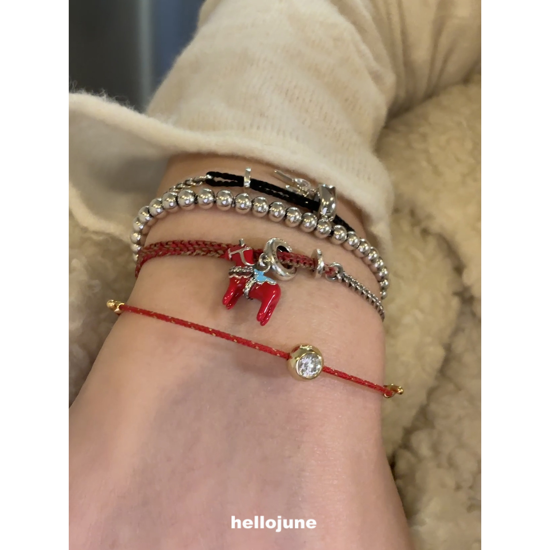 hellojune 莫桑钻925银小圆球红色手绳银色手绳手链