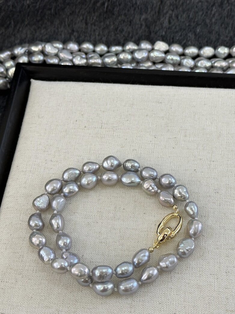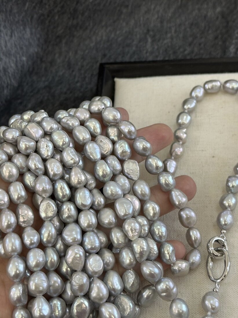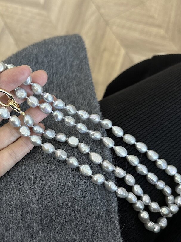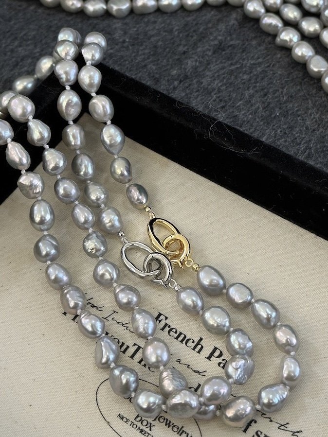 cc手作真多麻灰色天然巴洛克珍珠毛衣项链女配饰高级感大气休闲风