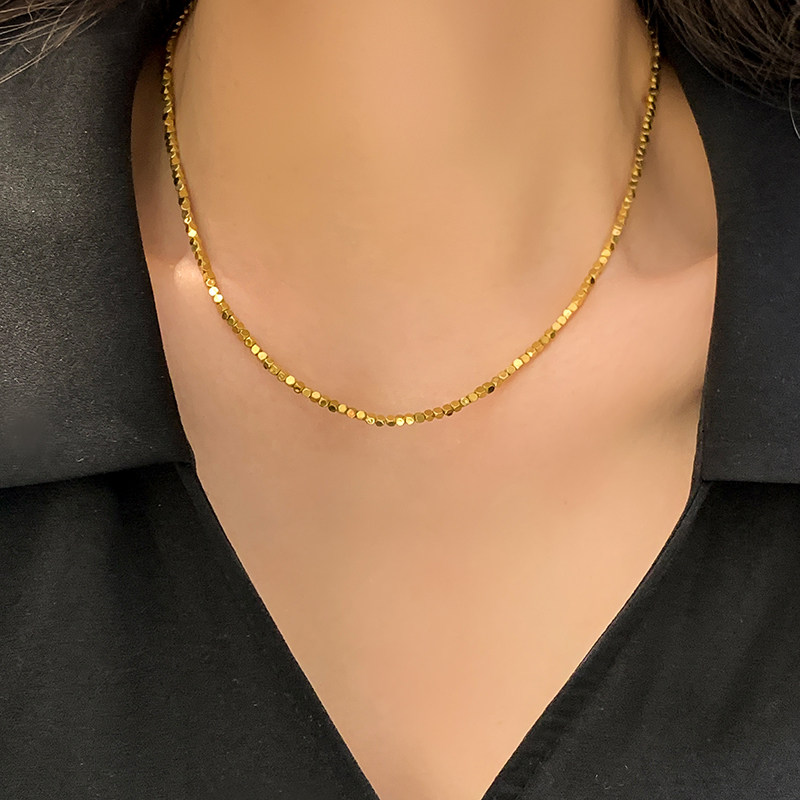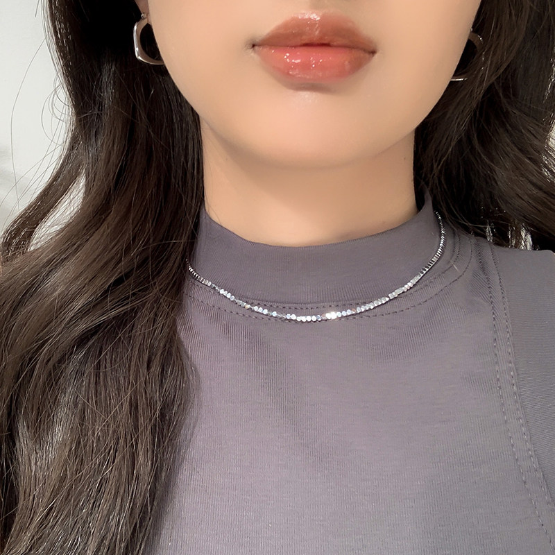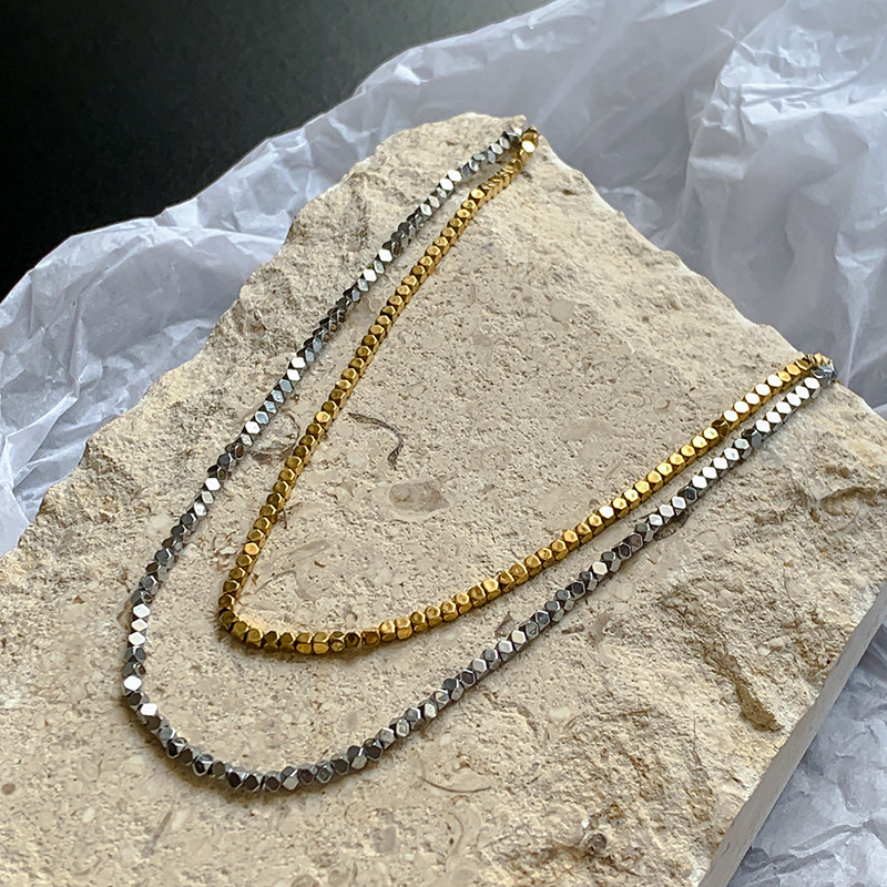 高品质闪闪金属碎银子几何方块冷淡风不掉色钛钢项链颈链个性潮人