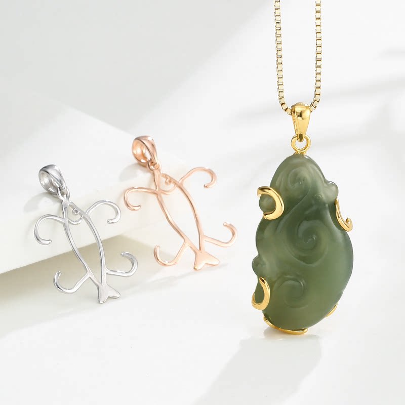异形不规则随形吊坠空托国潮鲤鱼吊坠托镶嵌蜜蜡翡翠包边吊坠配件
