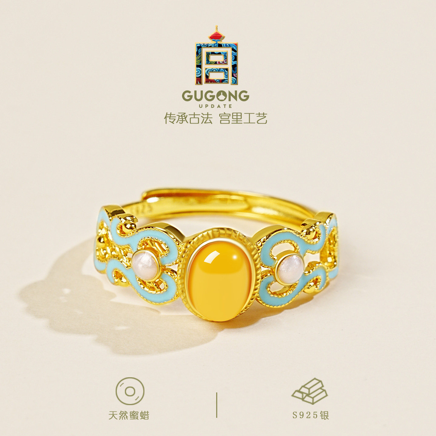 宫里上新蜜蜡戒指女纯银琥珀轻奢高级感指环生日母亲节礼物送妈妈