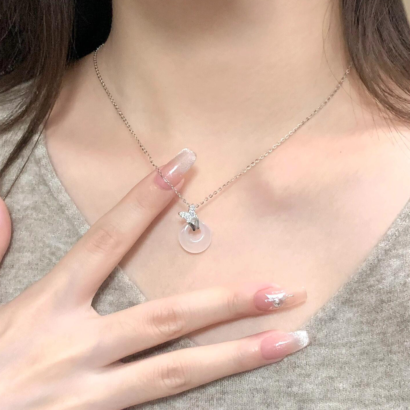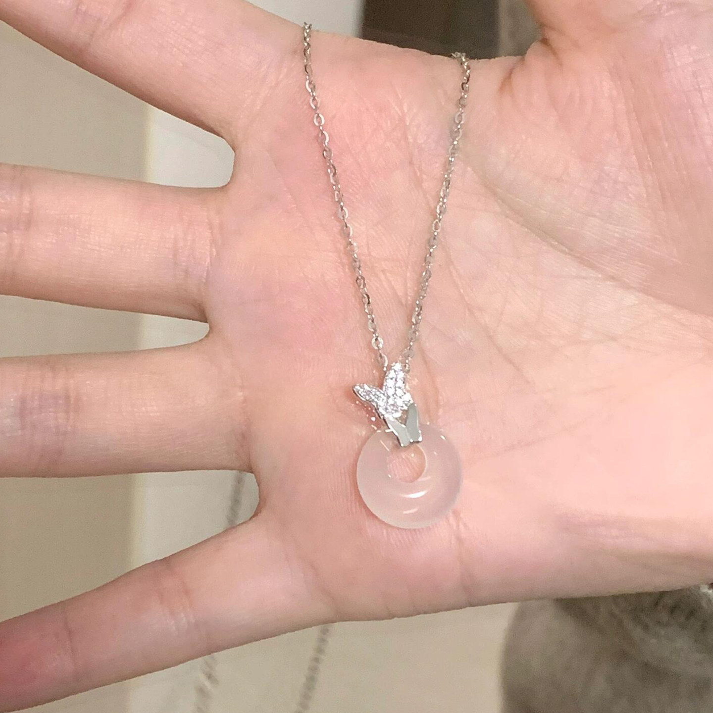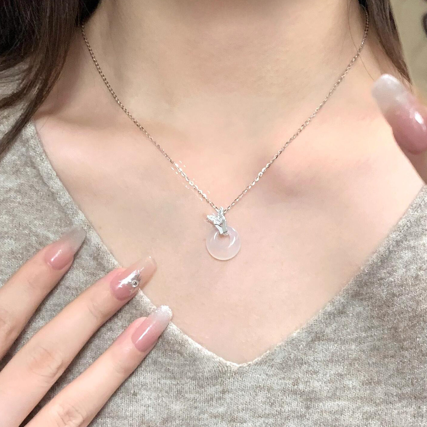 KL「福蝶」玉髓平安扣项链女S999纯银轻奢新款中式吊坠锁骨链礼物