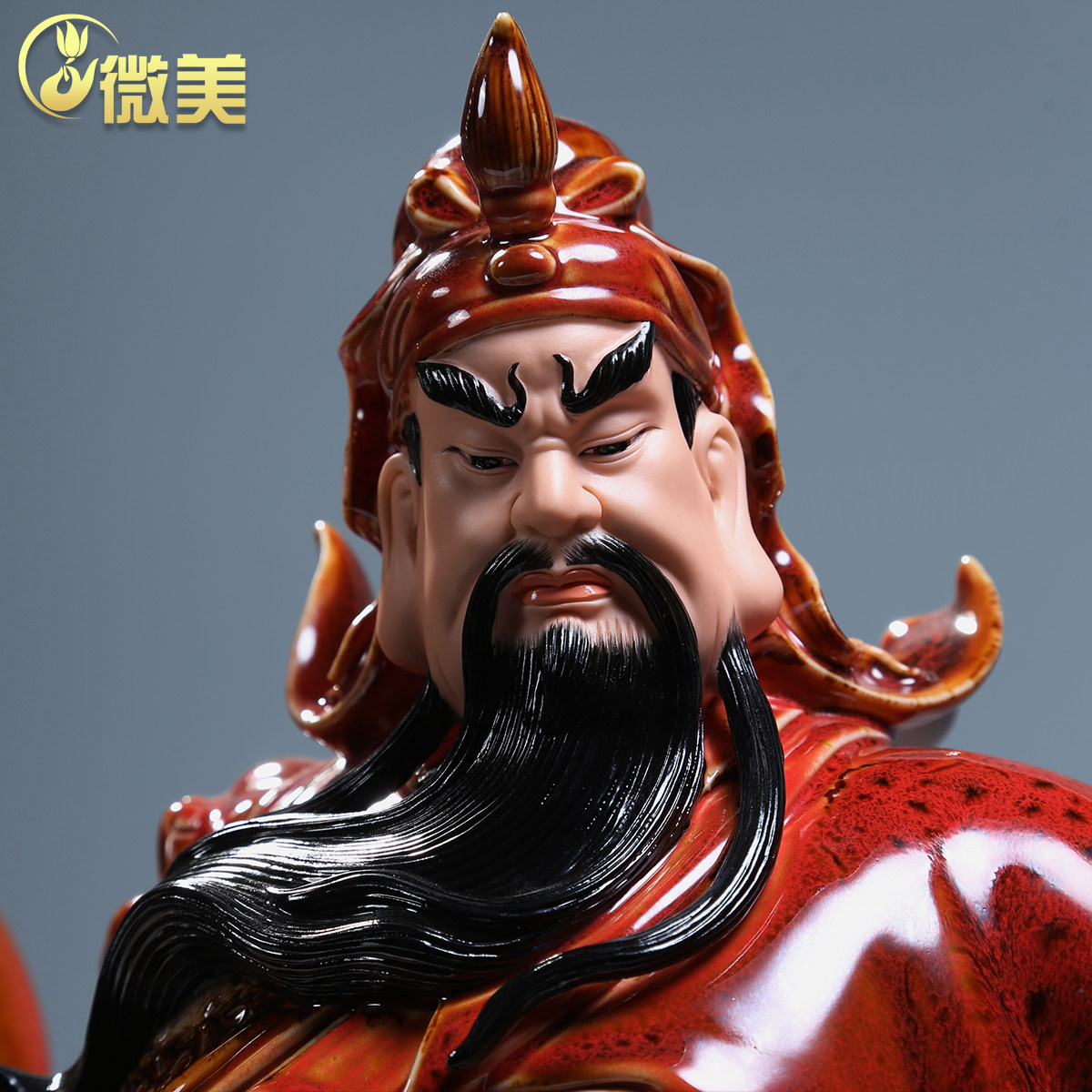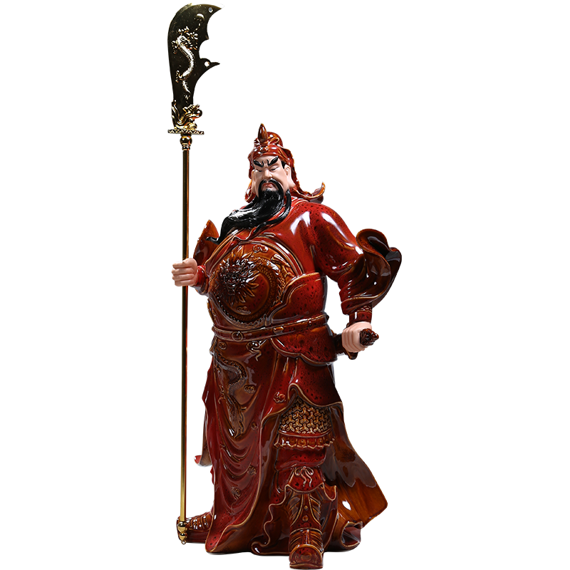 德化陶瓷关公像红釉供奉武财神关羽佛像摆件家用陶瓷关二爷神像