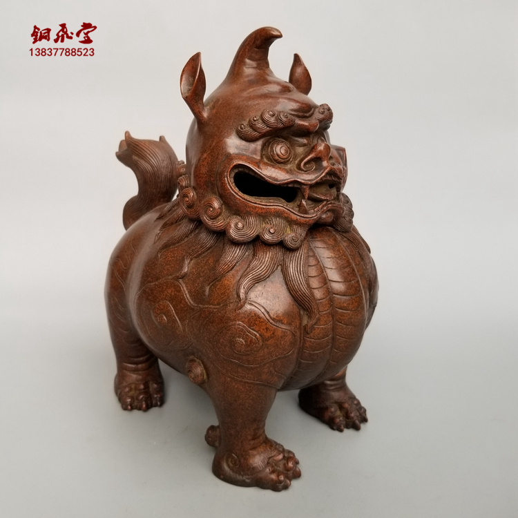 铜器仿古铜独角兽熏香炉大明宣德炉狻猊朝天吼仿苏工甪端炉摆件