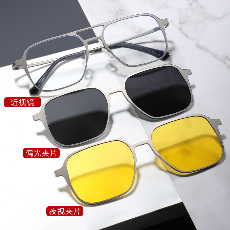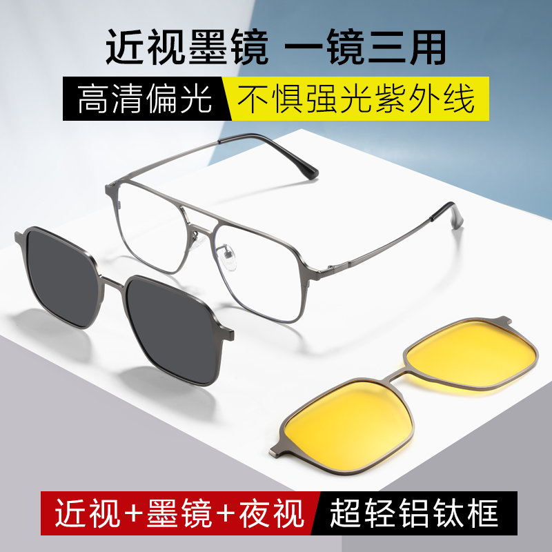 近视套镜磁吸眼镜男二合一双x梁偏光配度数防雾墨镜开车专用眼镜