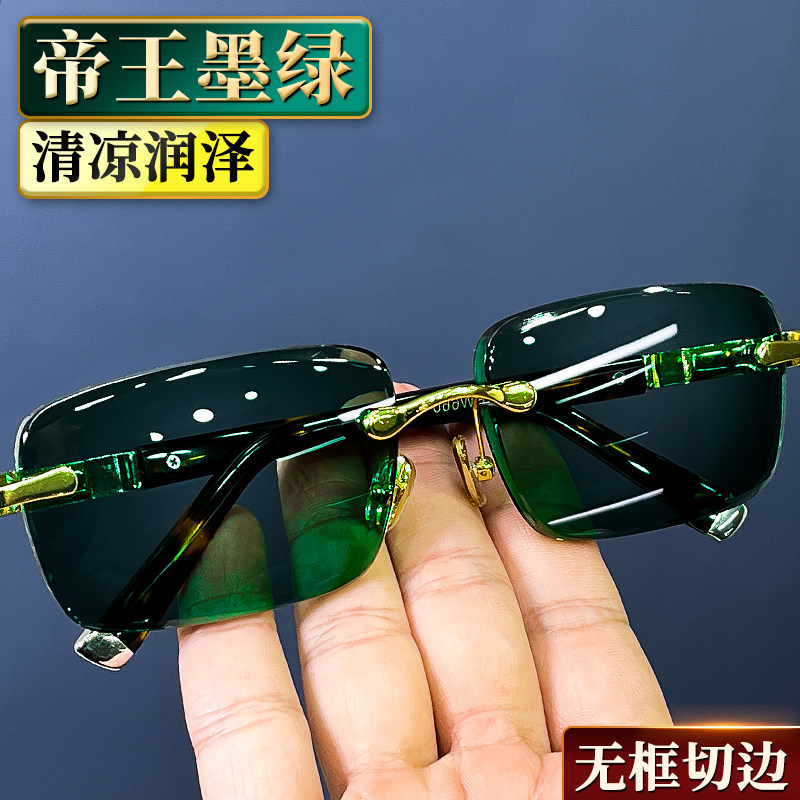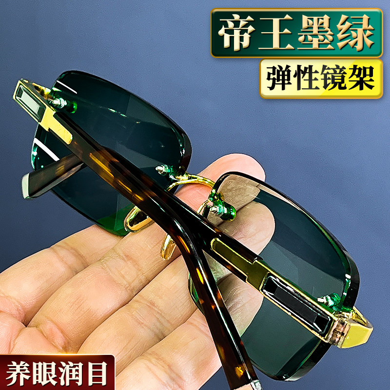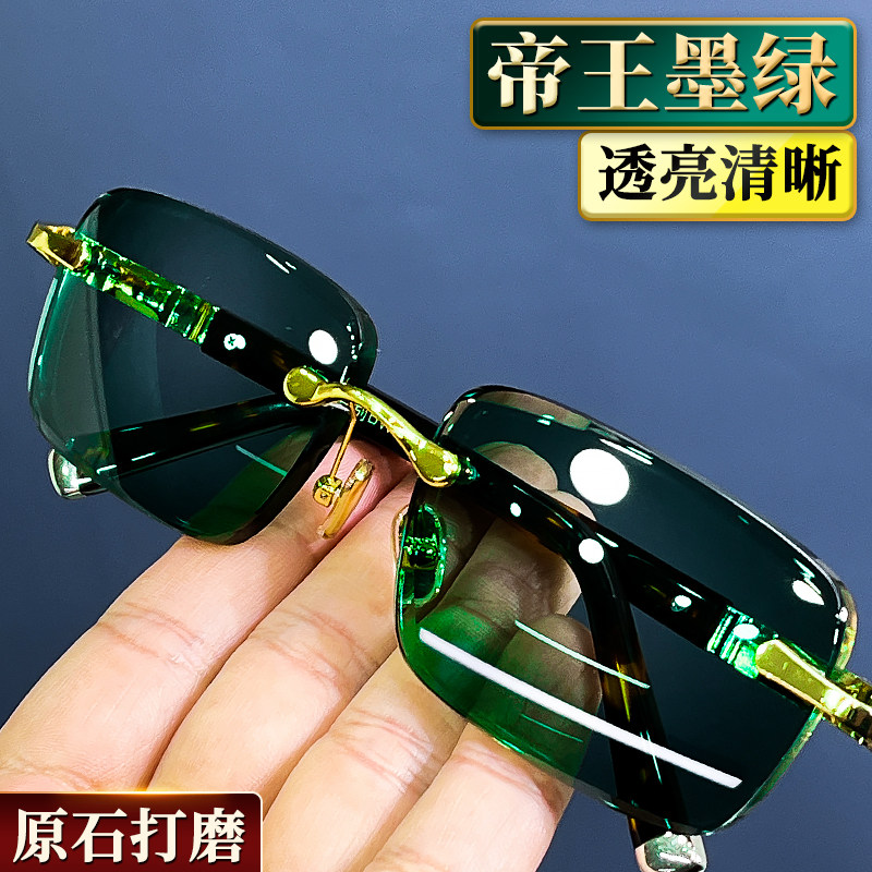 高档墨绿色水晶眼镜时尚太阳镜高清水晶石头镜墨镜男女玳瑁色镜架