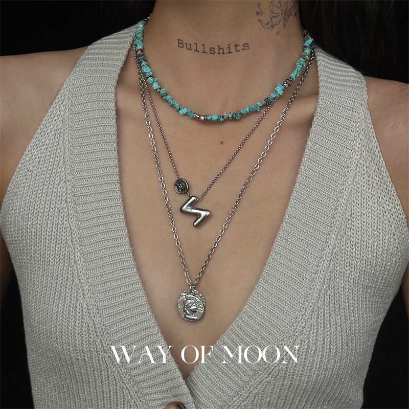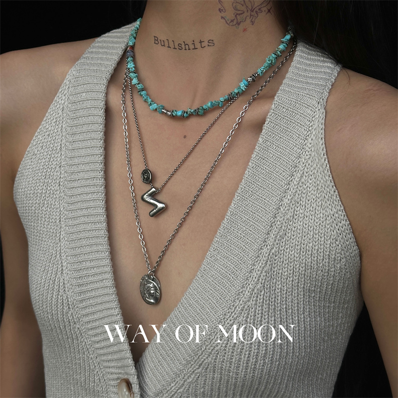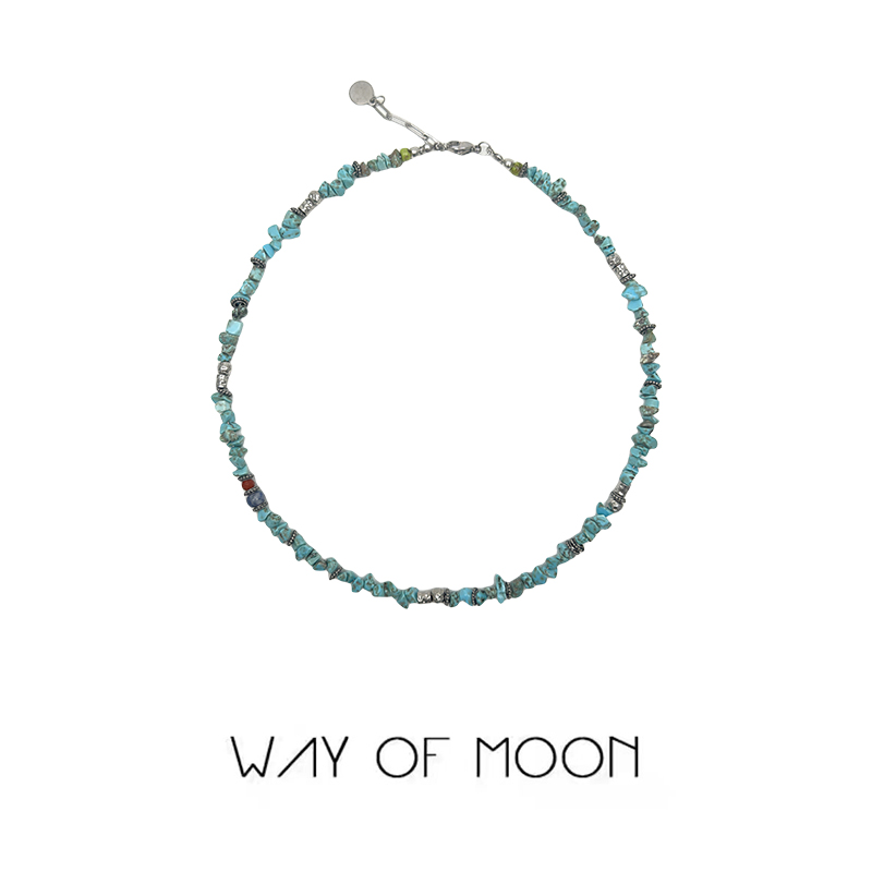 WAY OF MOON原创薄荷曼波复古蓝色多层叠戴手作串珠项链锁骨链女