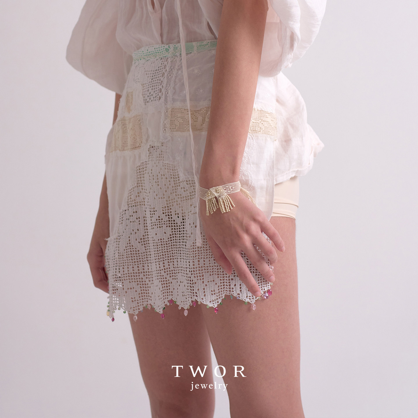 TWOR缇坞/法式白蕾丝碎花串珠流苏手链女小众气质温柔氛围感手饰