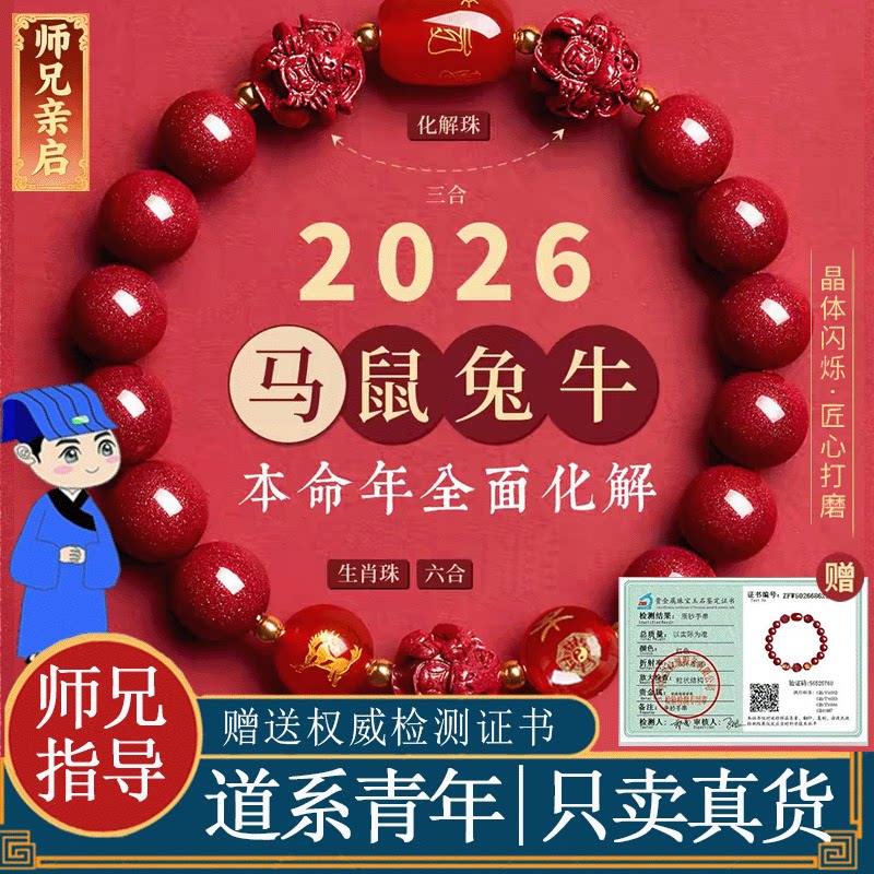 马年本命年天然朱砂手串三合六合转运珠男女士手链正品官方旗舰店