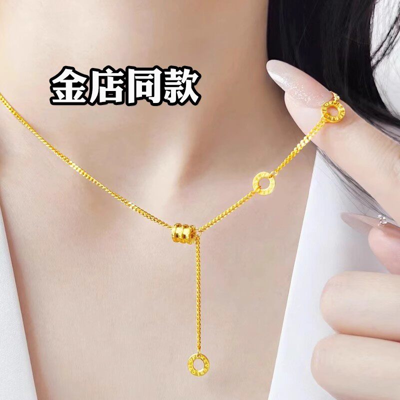 新款小蛮腰黄色项链女仿真锡沙金轻奢小众设计配饰高级感送女友