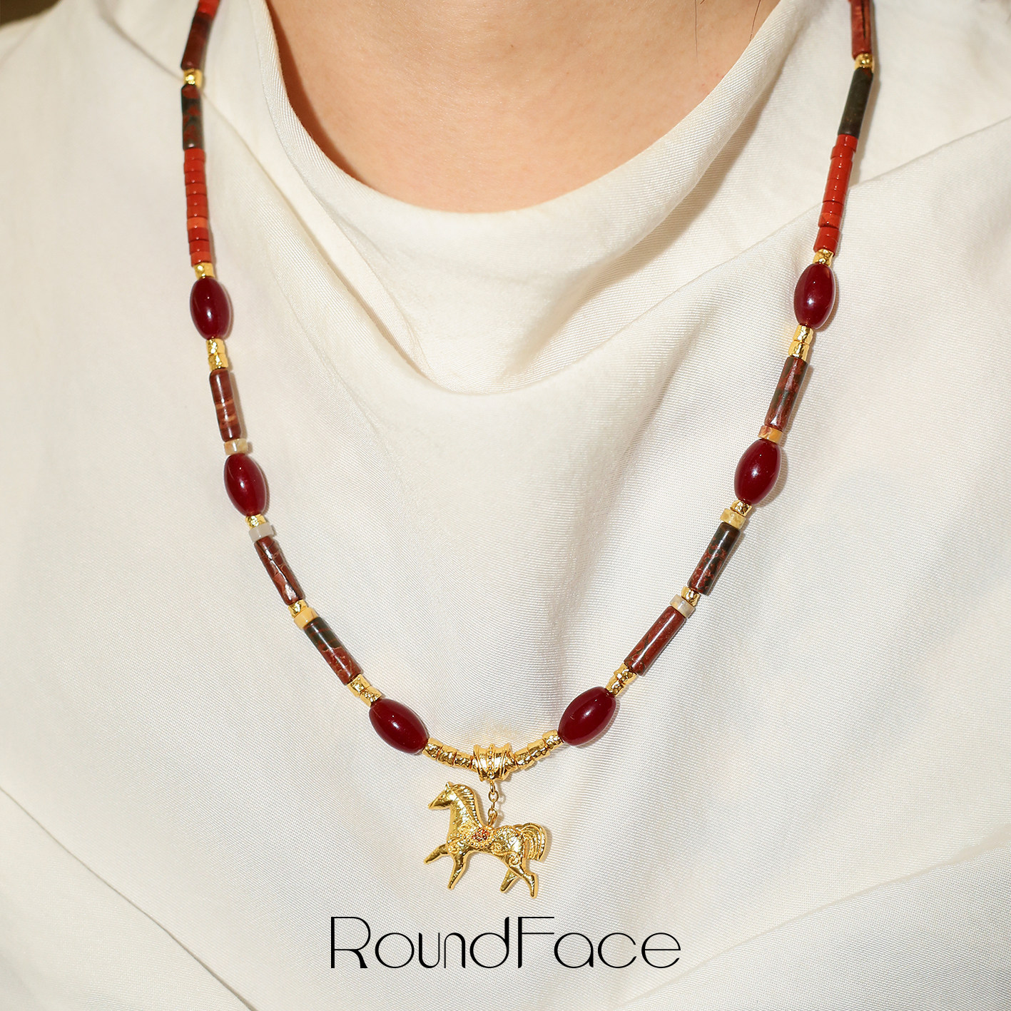 RoundFace炼天系列2026首饰高级感轻奢小马项链本命年红色礼物