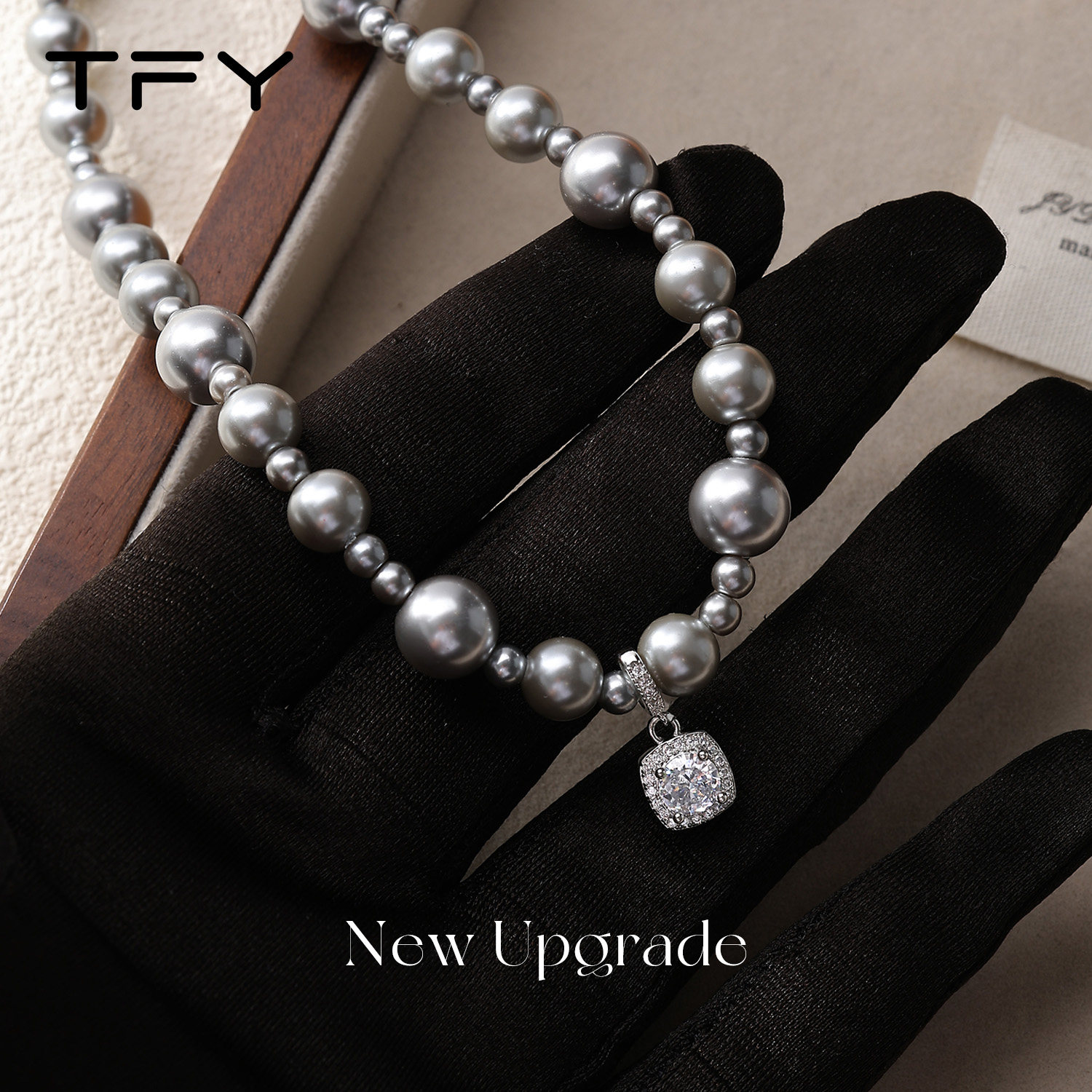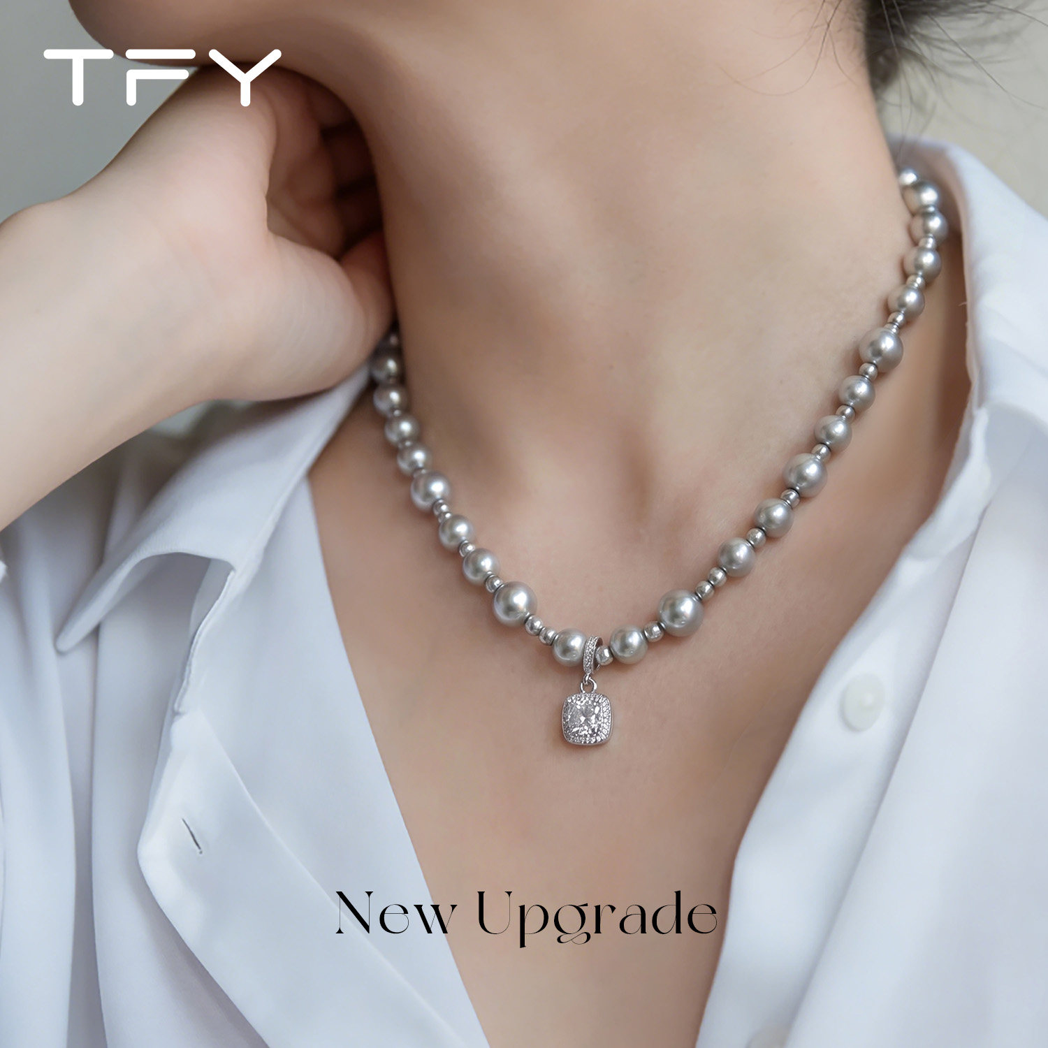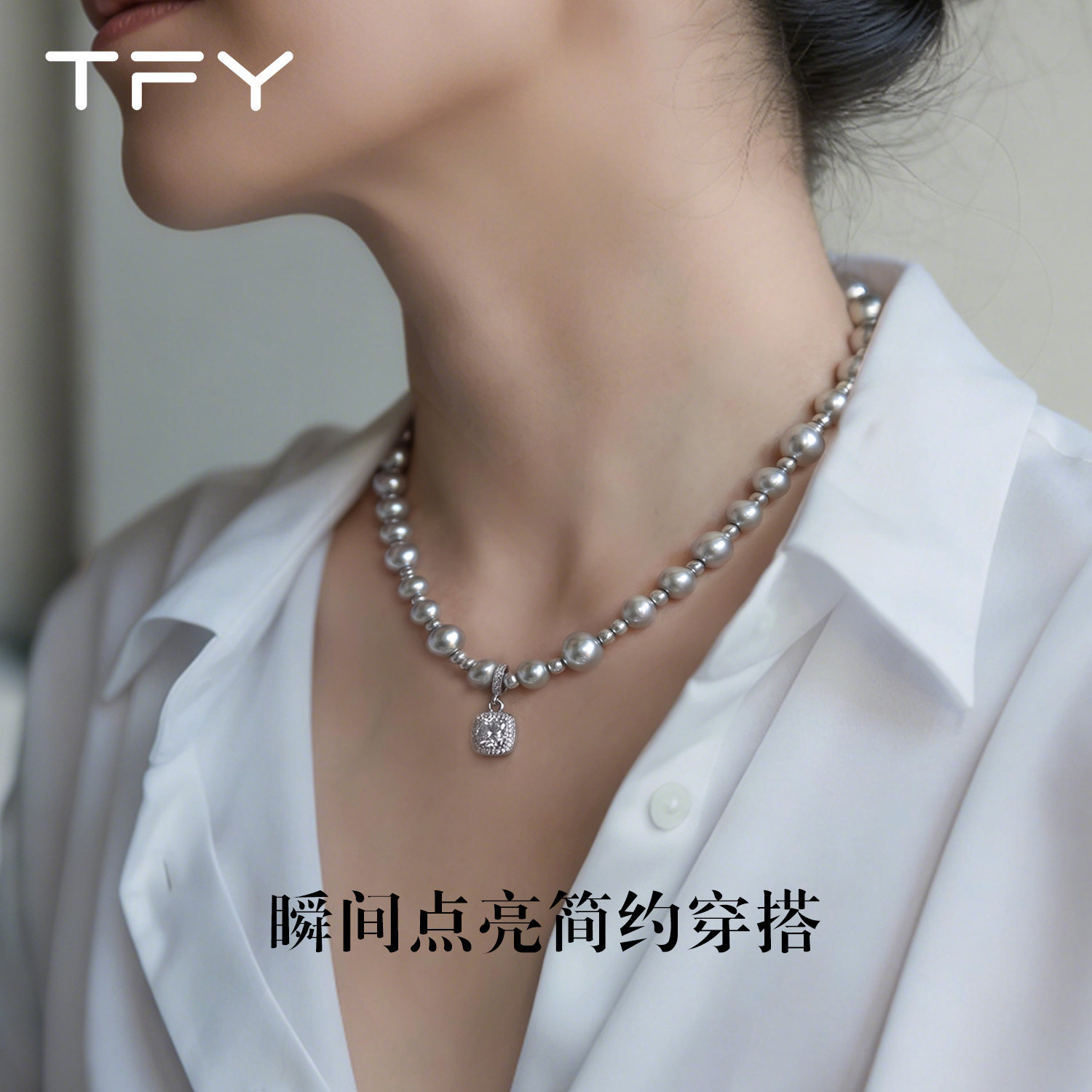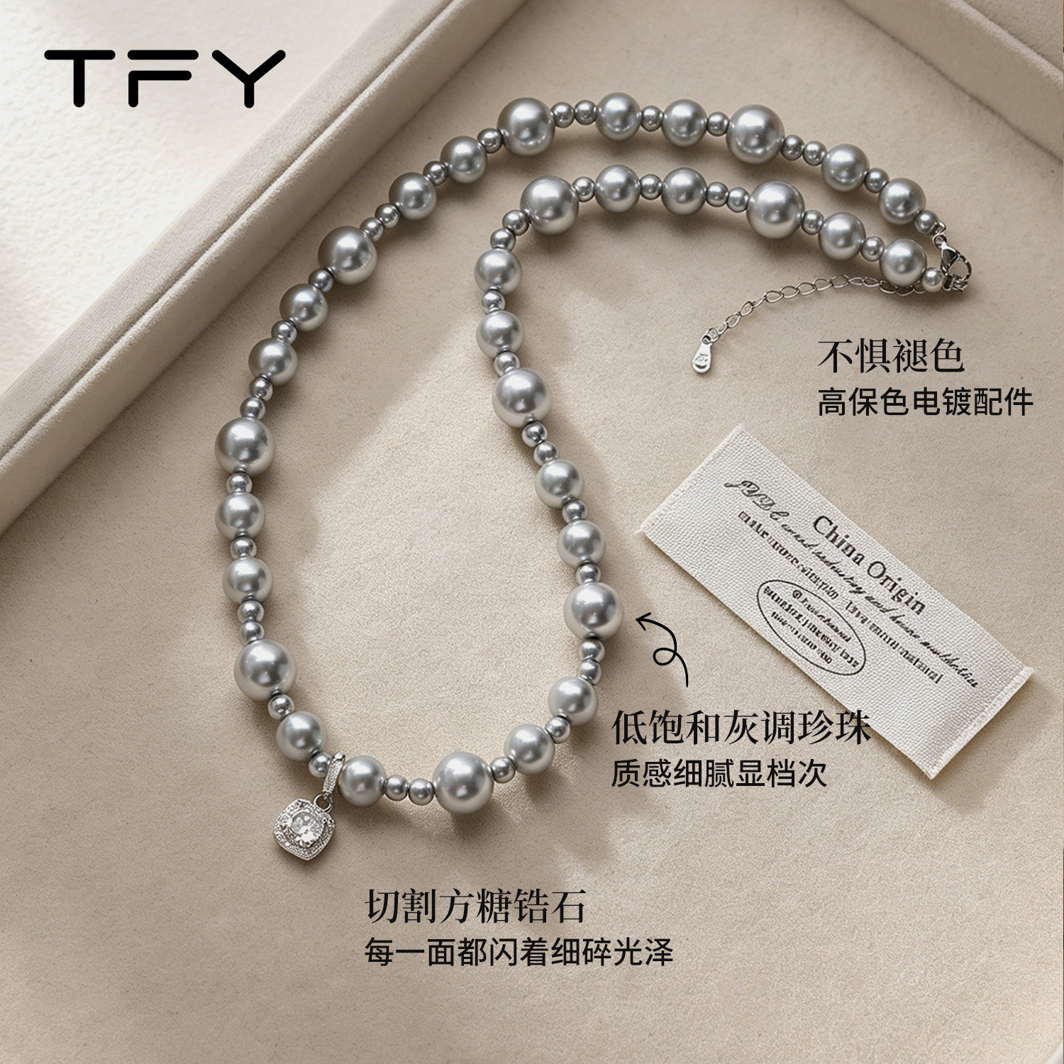 小方糖灰色珍珠项链女款2026新款高级感轻奢小众精致日常百搭颈链