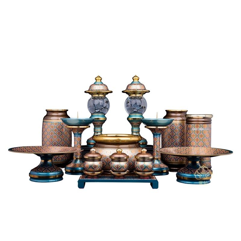 新品香炉供具套装家用佛前香炉碗圣水杯供盘莲花灯花瓶一套铝铜