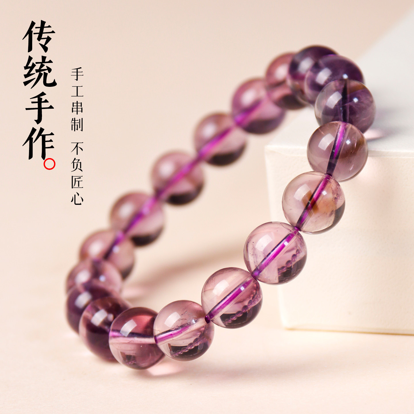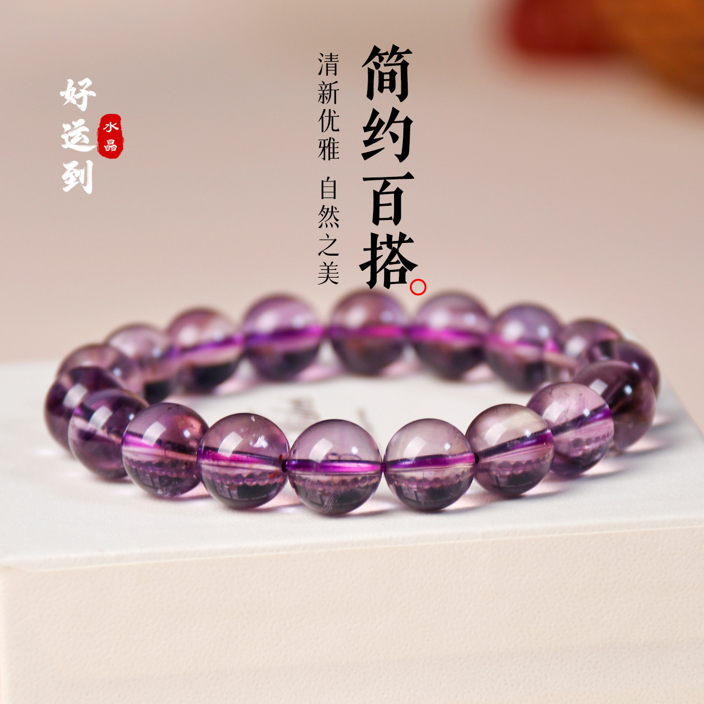 天然紫水晶圆珠手串紫水晶手链女款单圈紫色水晶手串饰品礼物