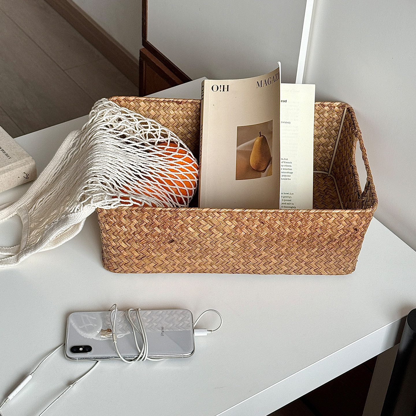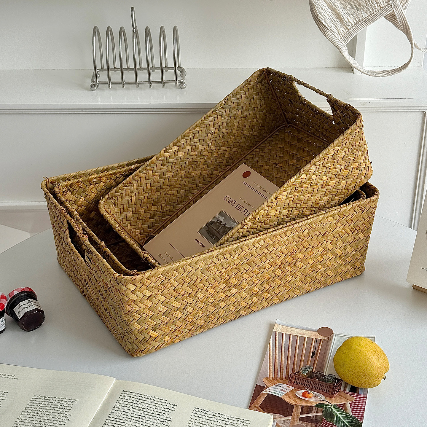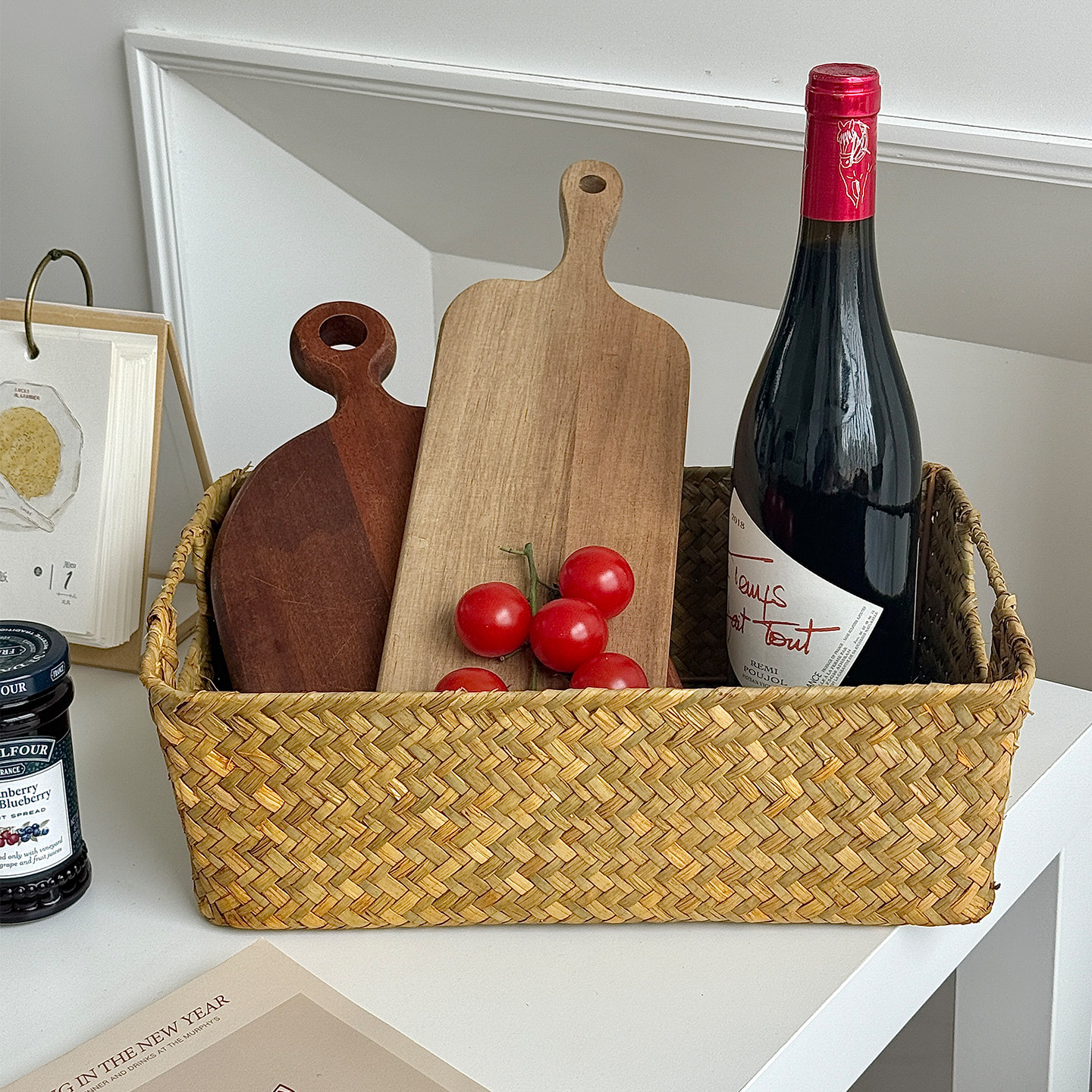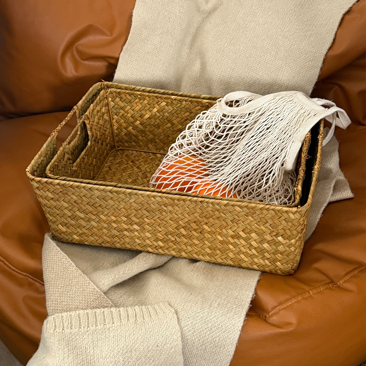 长方形收纳筐整理筐竹编篮子储物摆饰篮子草编筐编织篮大号竹筐