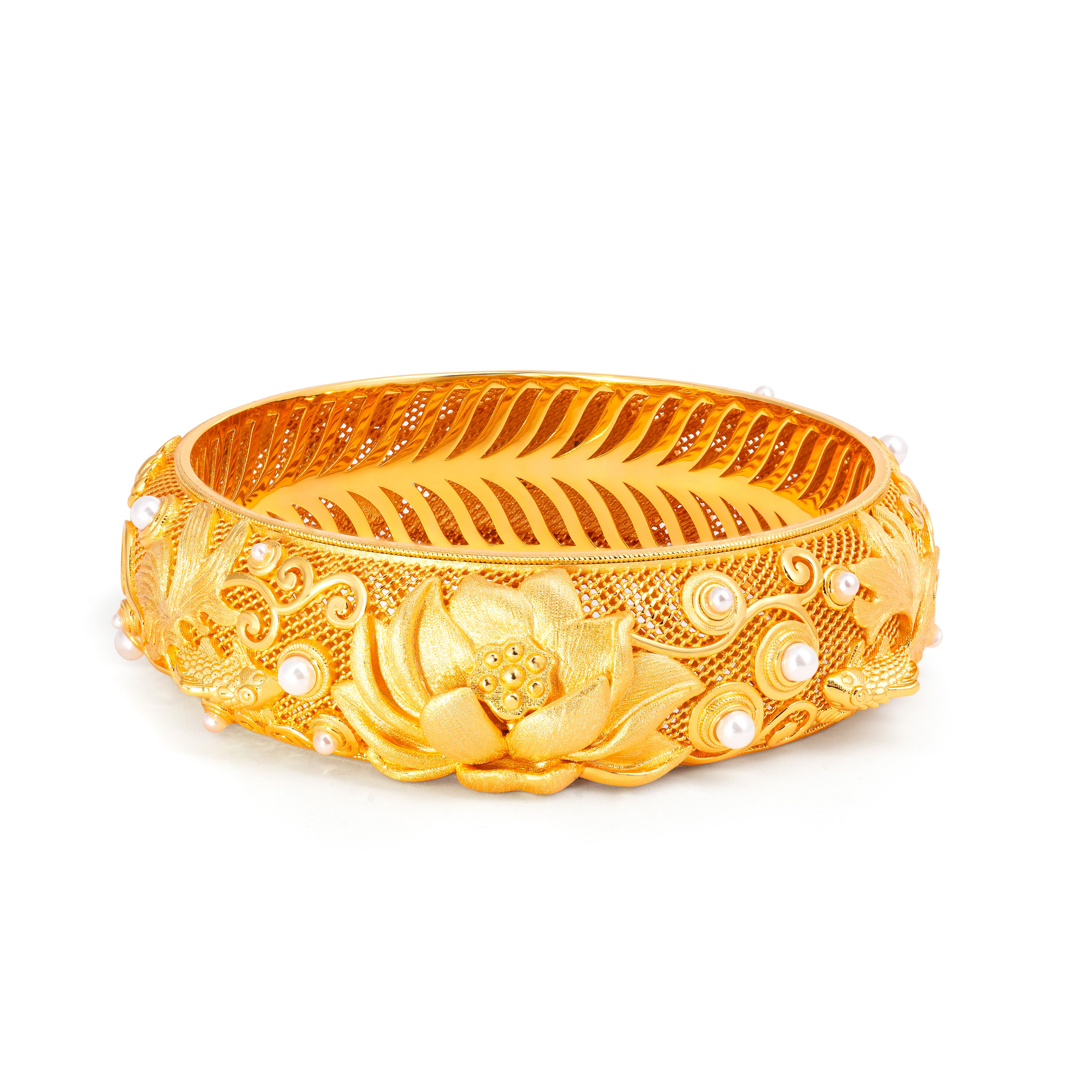 VISING珠宝《连年有余》金色荷花锦鲤手镯古法金拉丝手工镯925银