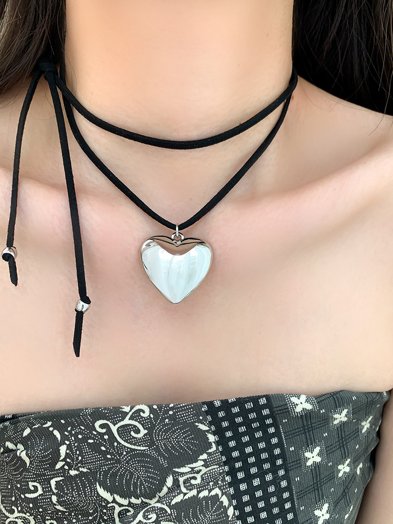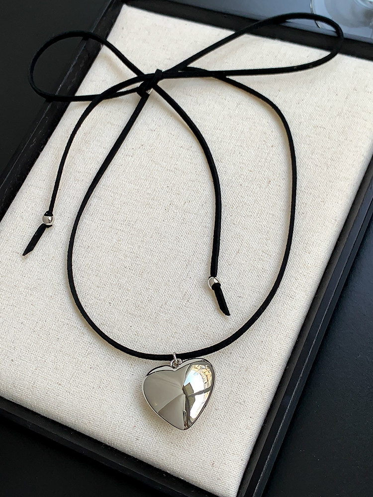 韩国ins博主韩素希fever同款黑色爱心系带蝴蝶结项链甜酷辣妹颈链