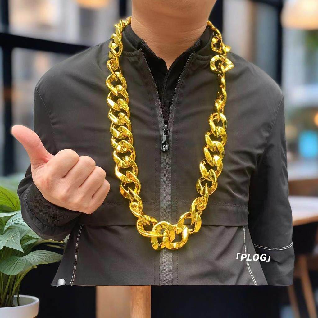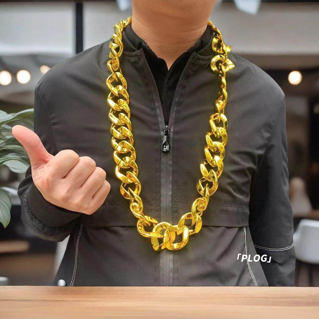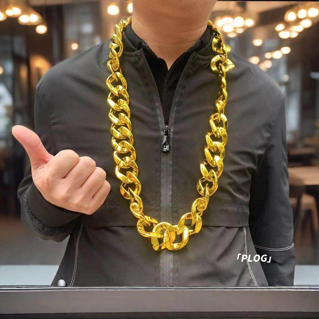 网红嘻哈大金链子土豪男超粗金项链假黄金塑料真直播道具社会人