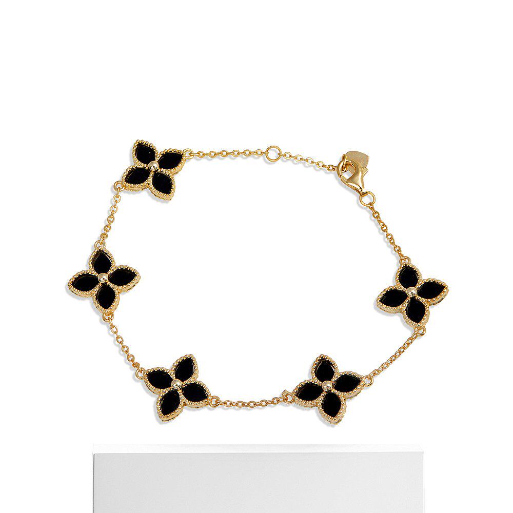 自营 savvy cie jewels18K金纯银花朵手链-黑色 美国奥莱直发