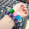 强光眼线猫眼石手串芋泥紫单圈手链彩色宝石碧绿色大颗粒男女手串
