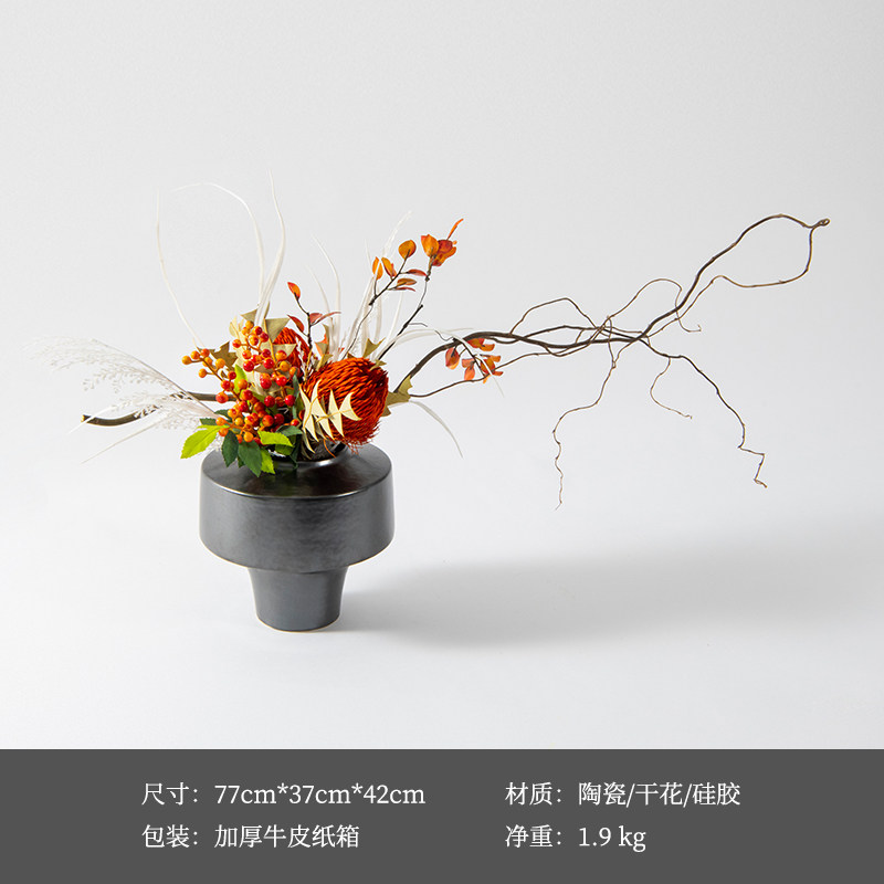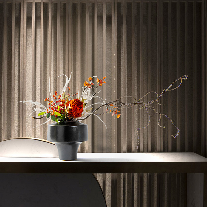 新中式禅意仿真枯枝绿植盆景侘寂花艺酒店会所茶室酒店装饰品摆件