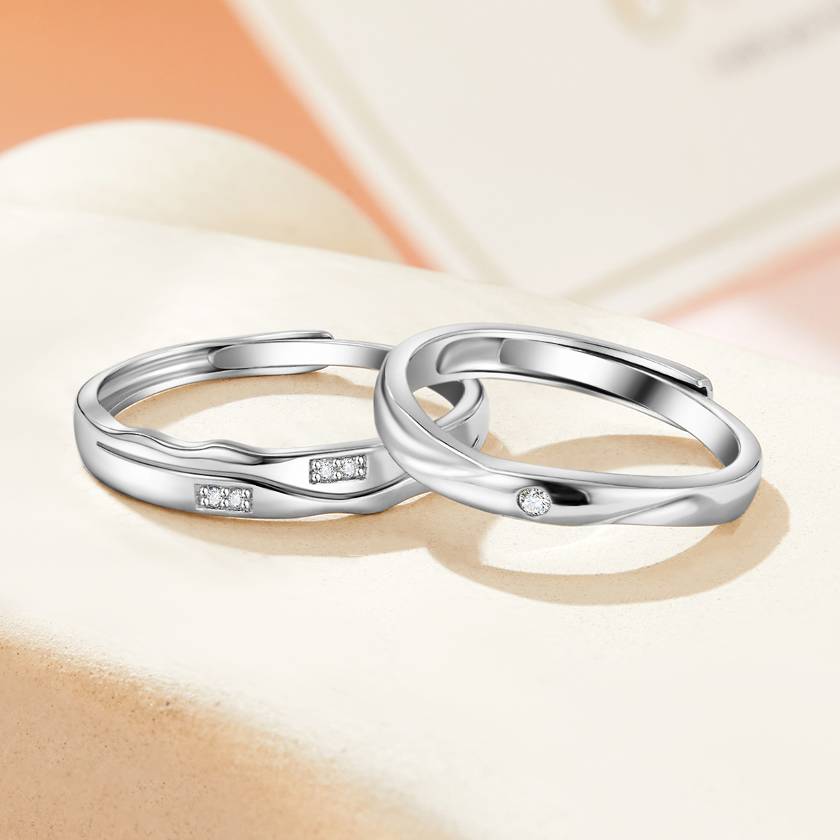 softdora/索缇朵爱意交织情侣对戒S925银钻石戒指男女款一对送礼