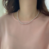 小立交《粉紫色》6-7mm天然近圆淡水珍珠项链女纯银高品质毛衣链