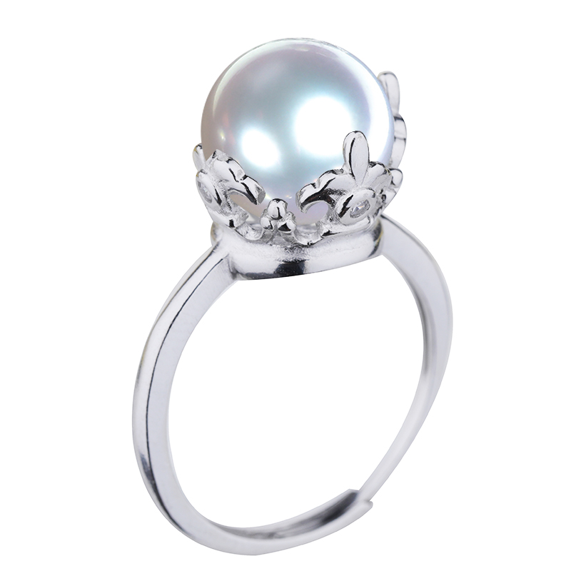 S925纯银戒指空托可调节圈口镶嵌珍珠蜜蜡时尚银饰戒托11 12 13
