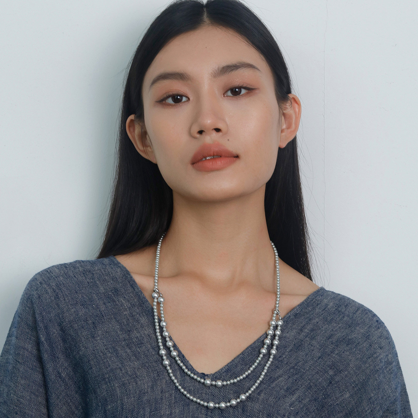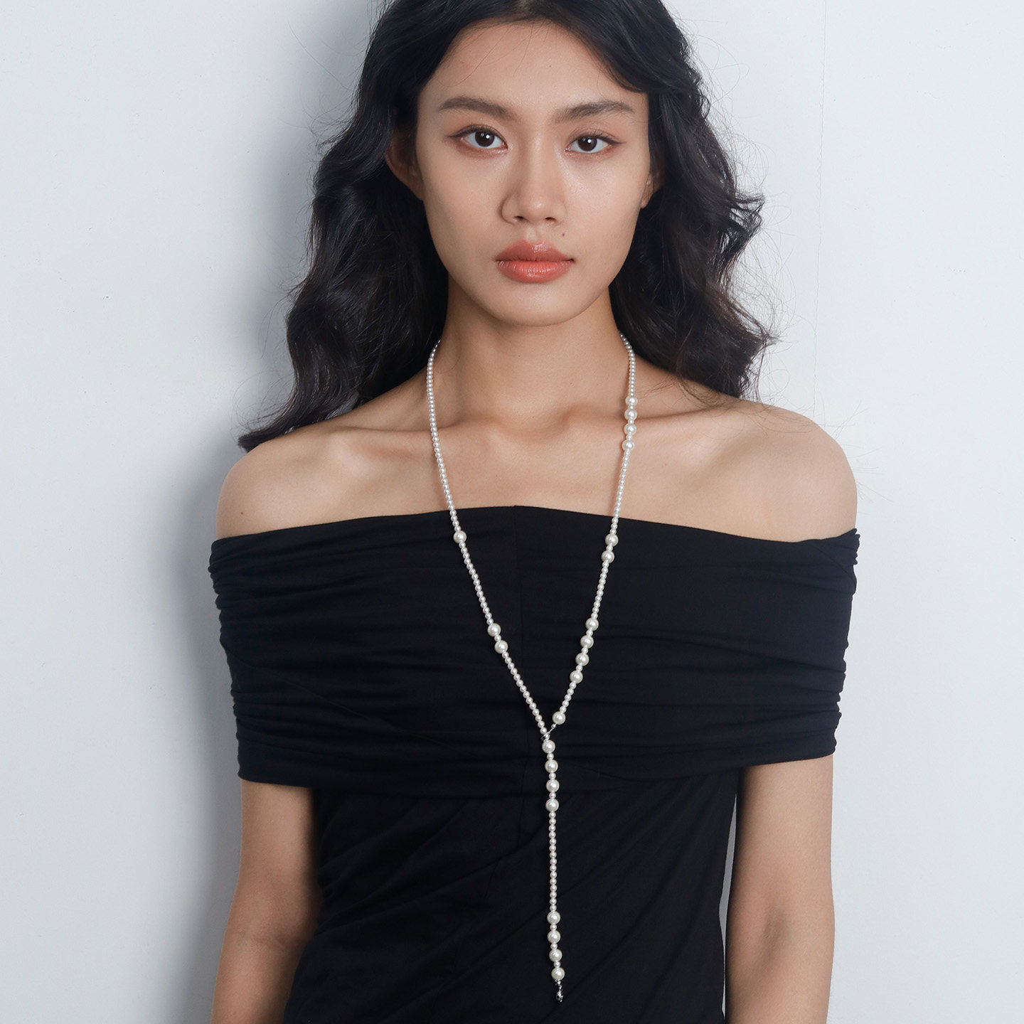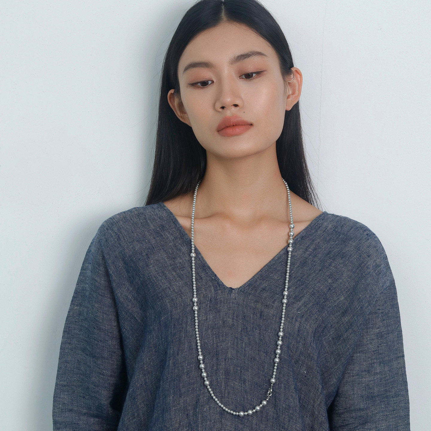 Moment 多种戴法 真多麻灰色珍珠长款毛衣链项链颈链配饰装饰秋冬