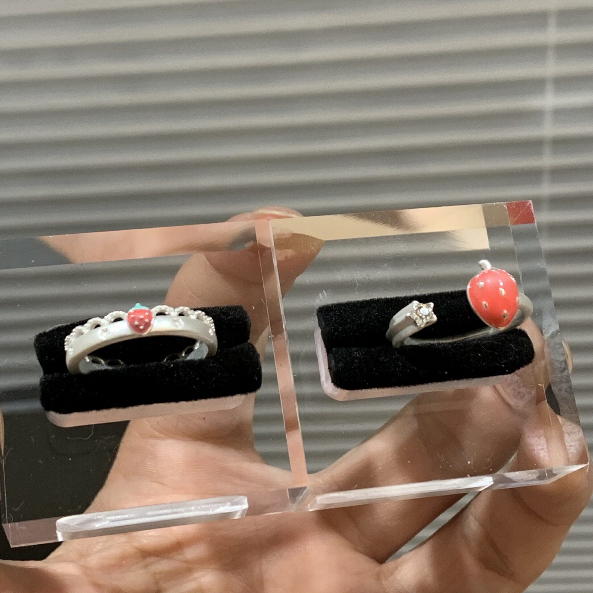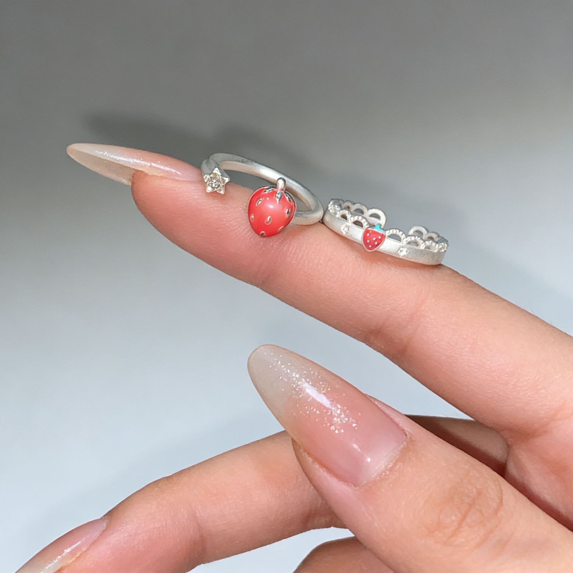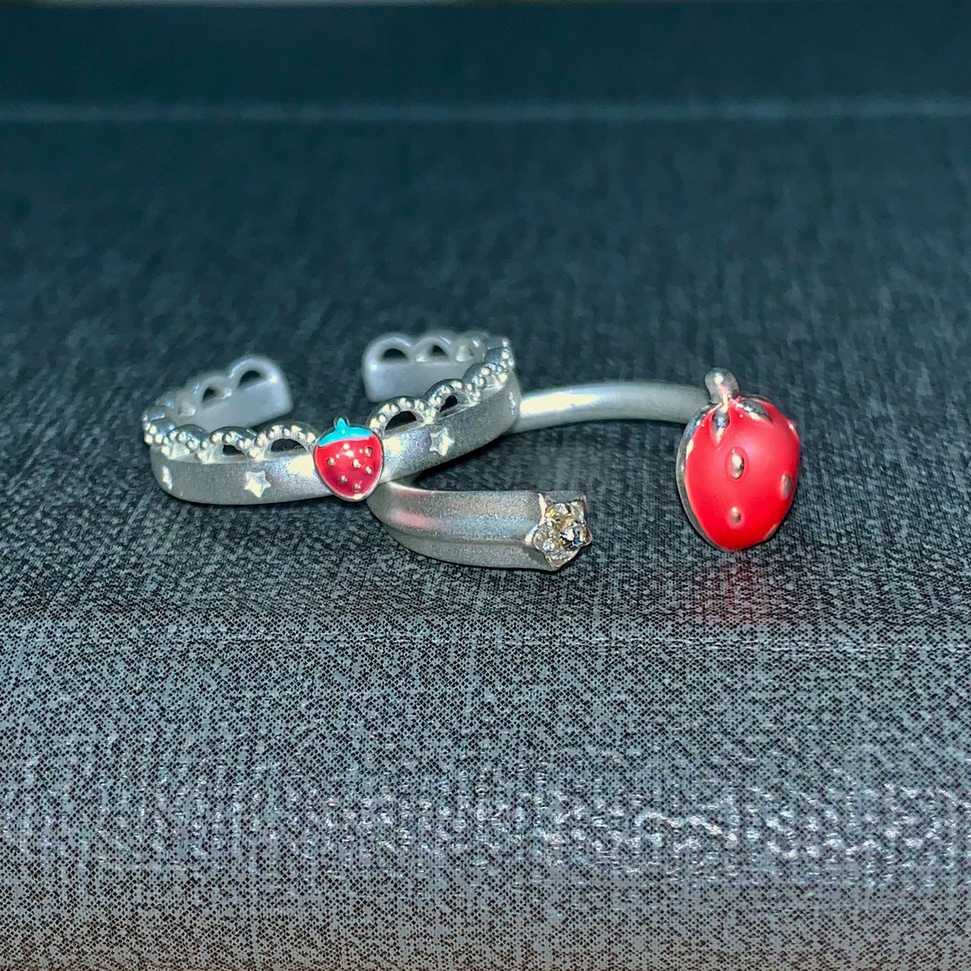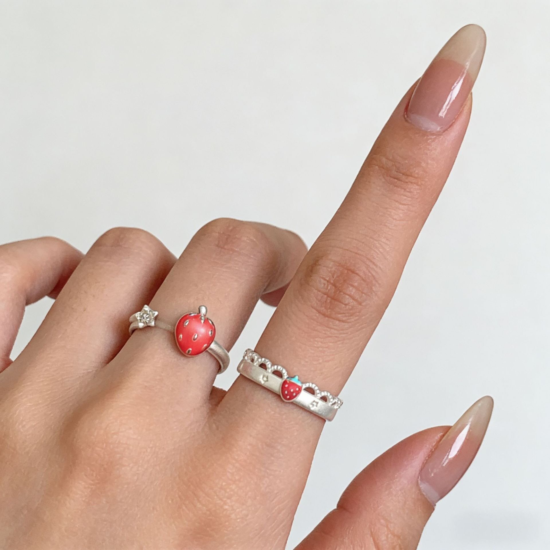 韩系冷淡风小众百搭甜美戒指蕾丝草莓开口可调节指环女减龄少女感