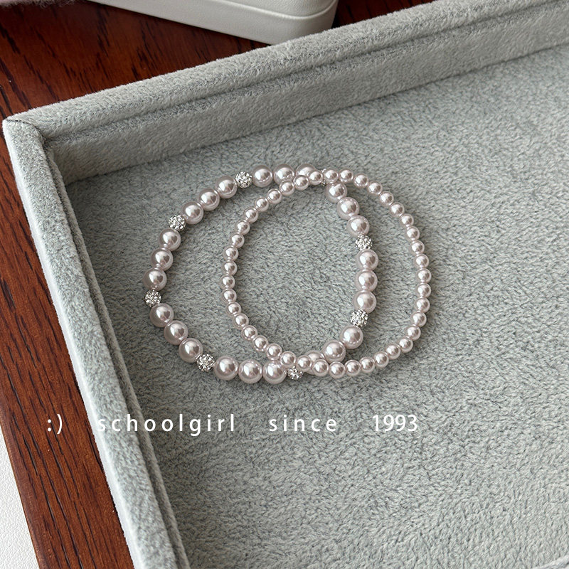 曼塔玫瑰粉紫色珍珠手链弹力绳简约轻奢高级感叠戴手链百搭不挑人