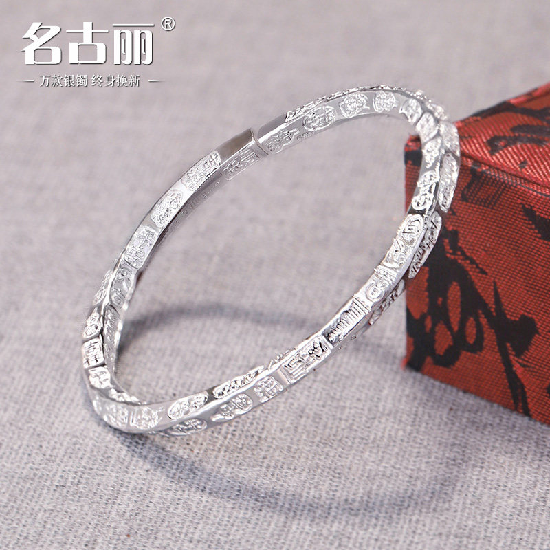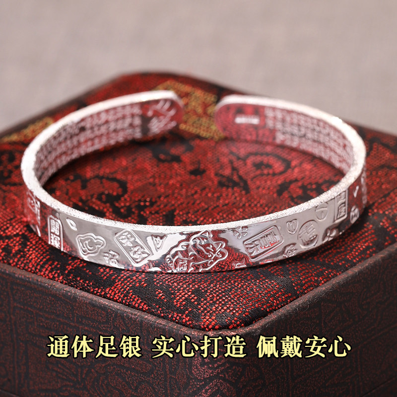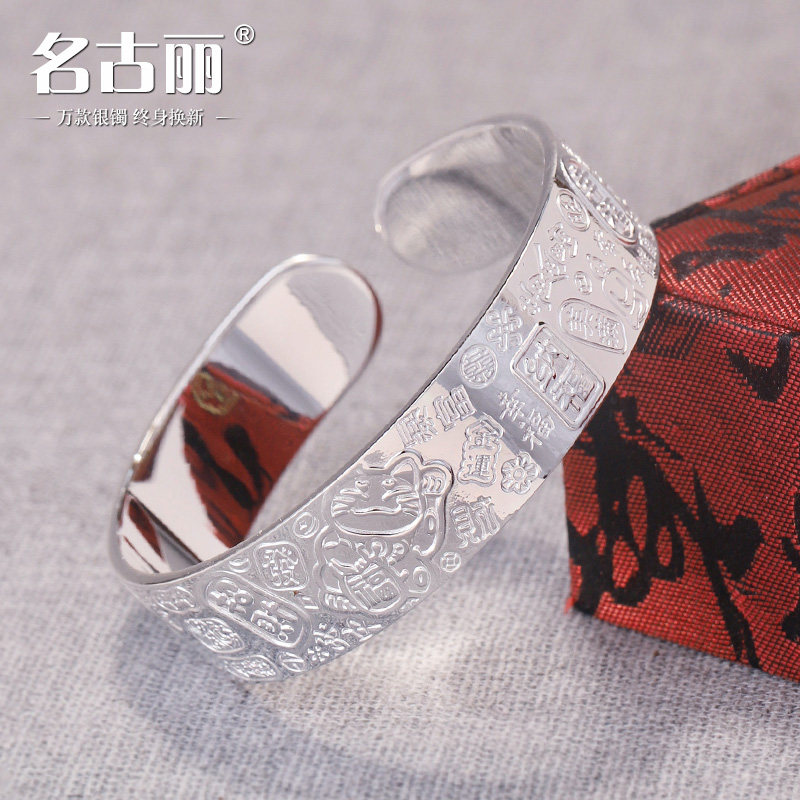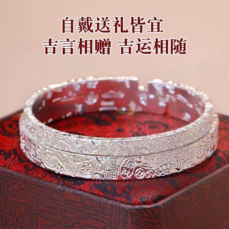 足银9999雪花银手镯纯银镯子福袋吉言国风招财猫手环汉服配饰送礼