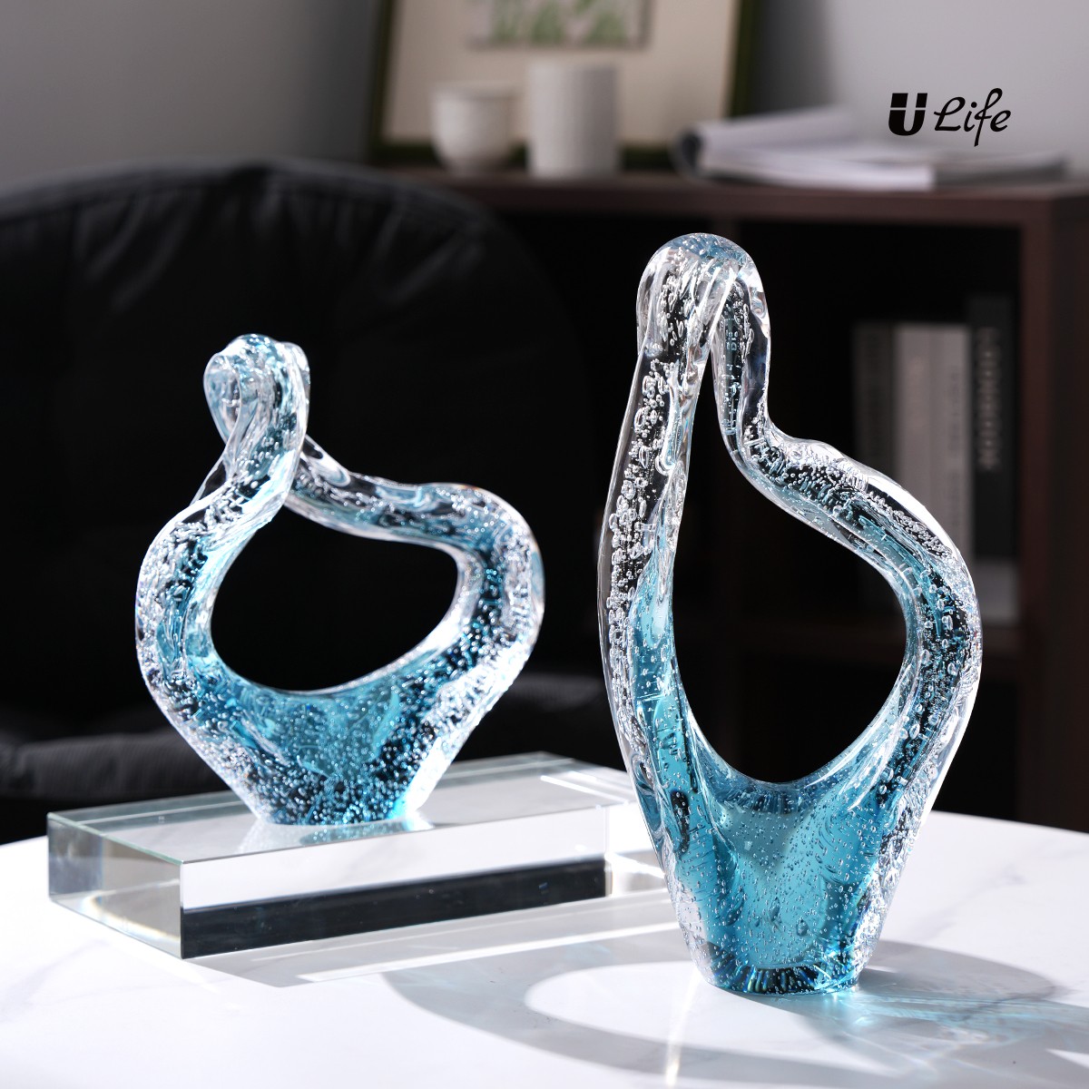 青澜缠韵琉璃艺术摆件创意抽象手工摆件客厅玄关酒柜装饰品工艺品
