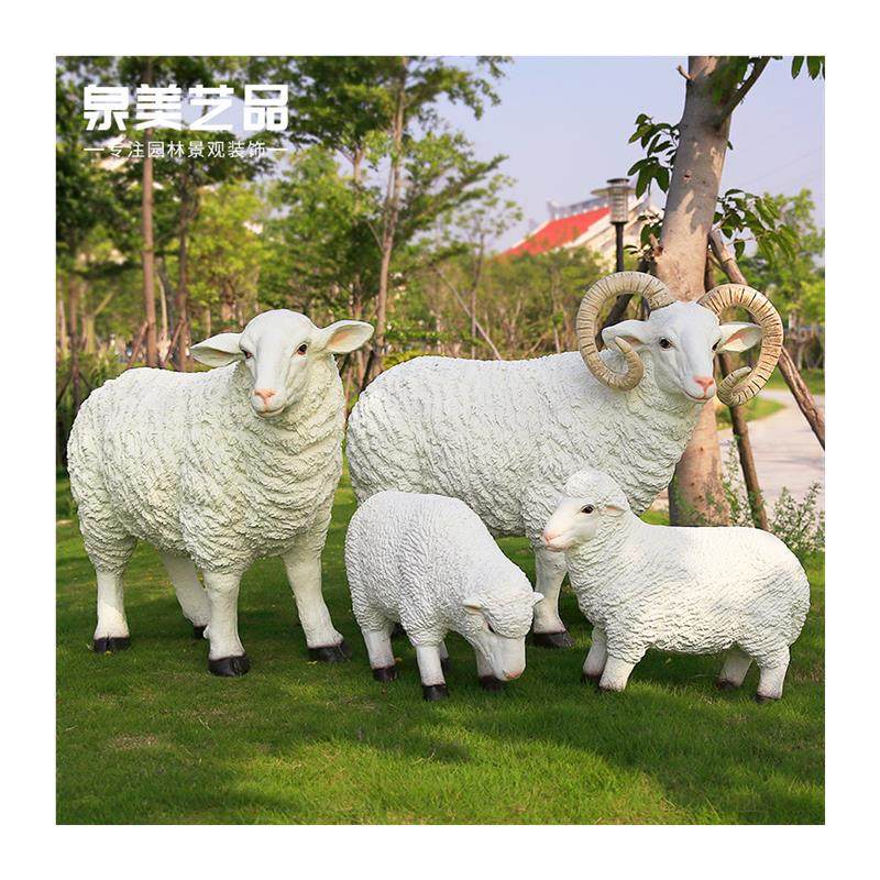 仿真绵羊摆件山羊草皮羊玻璃钢雕塑园林花园庭院户外草坪动物装饰