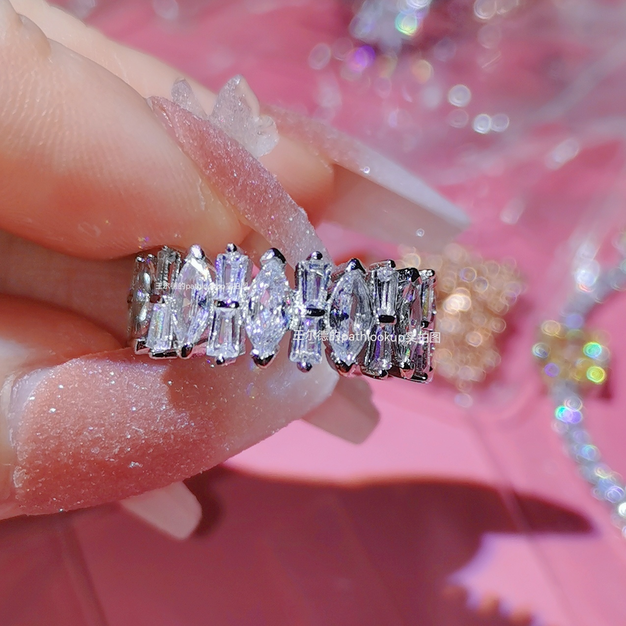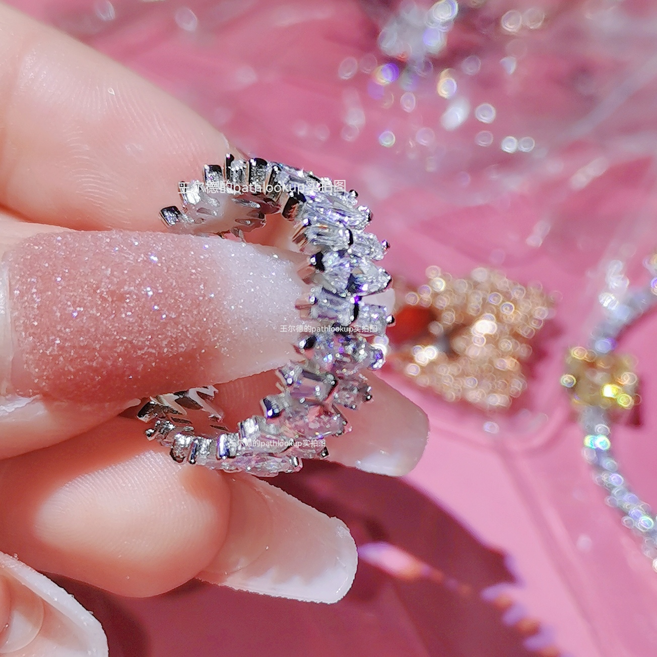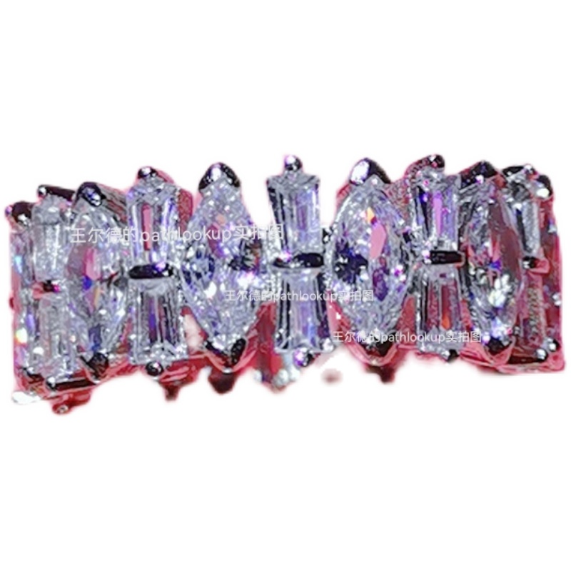 18K白金高碳钻石戒指女ins冷淡风围镶满钻超薄克罗地心食指戒礼物