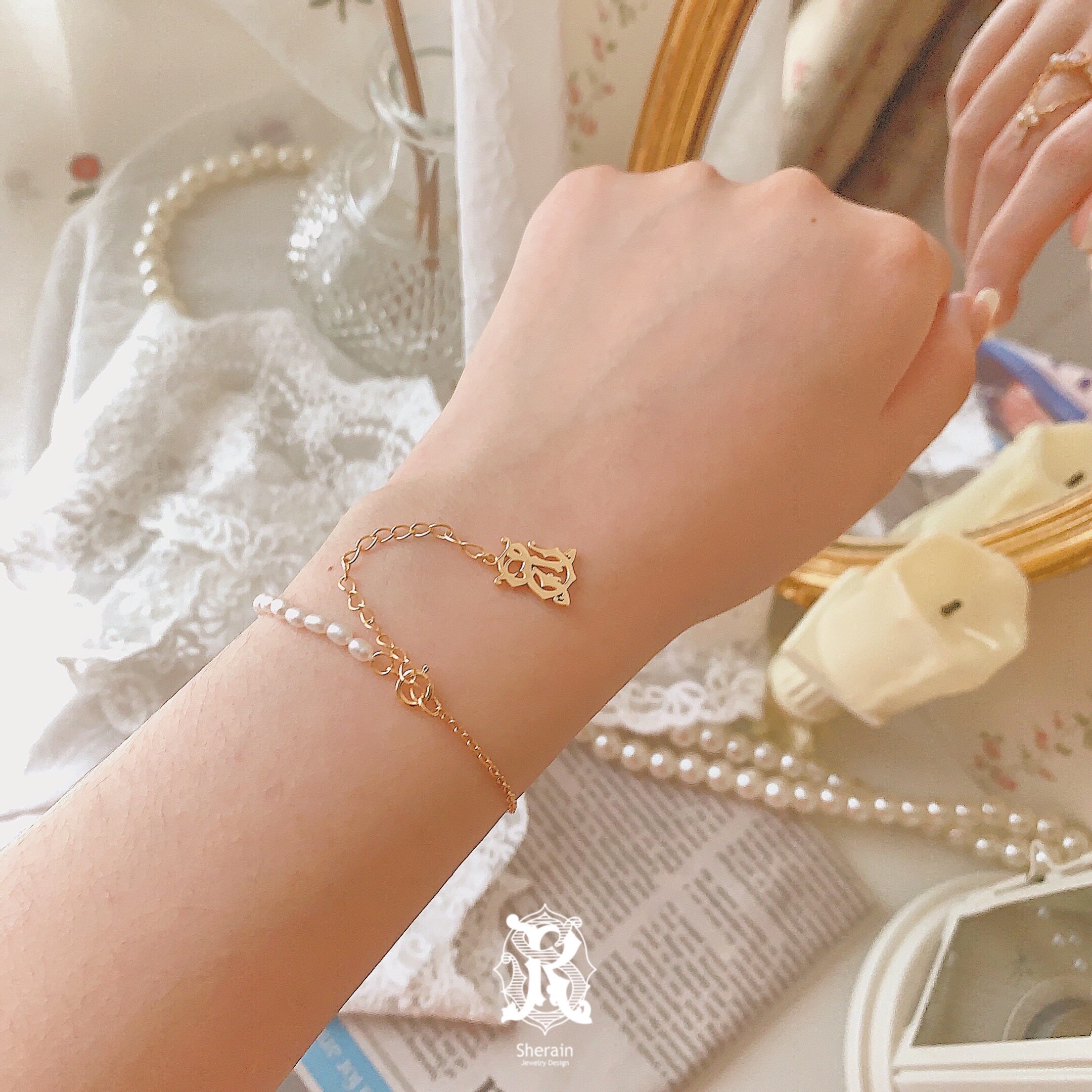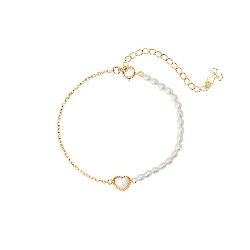 SHERAIN | 甜心密语手链 爱心白贝母滚珠边天然珍珠不对称设计