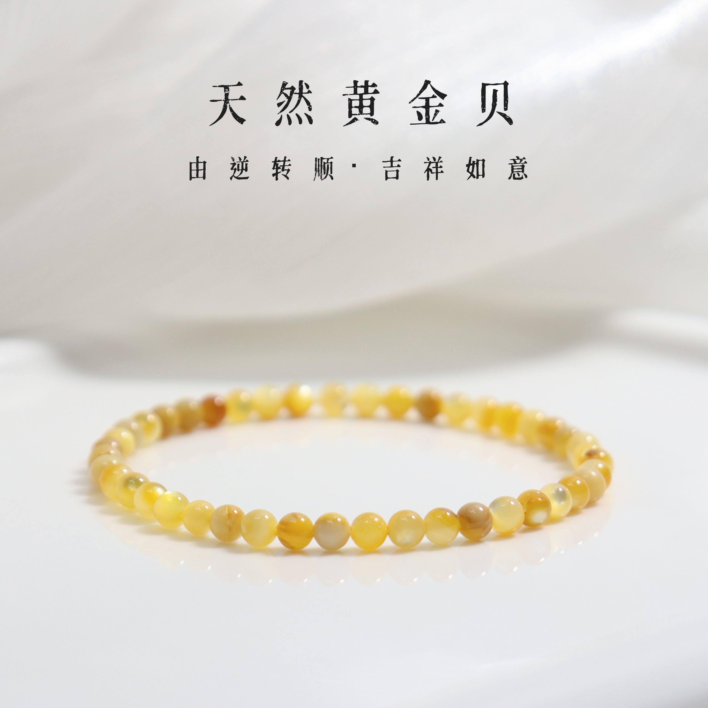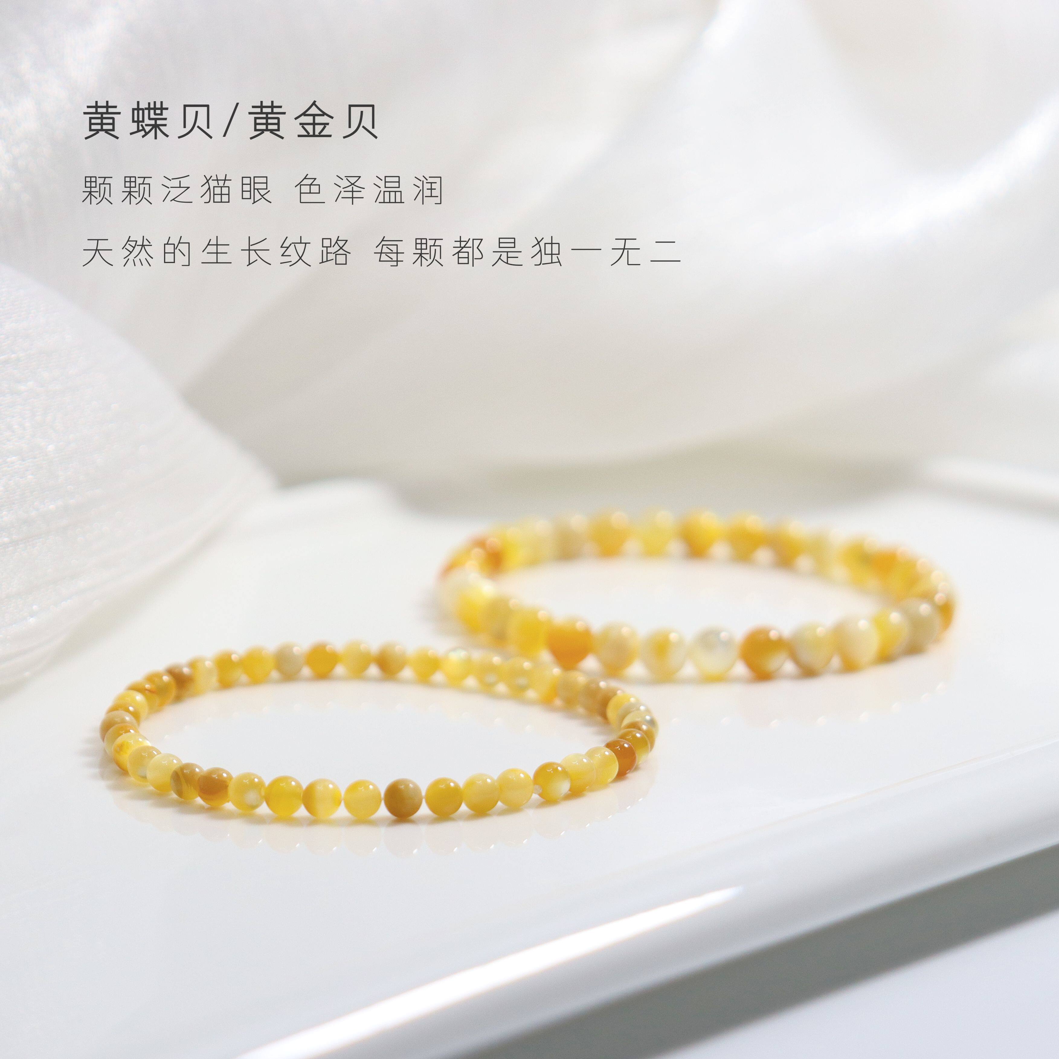 超润纯天然黄碟贝黄金贝珠手串多巴胺黄色弹力绳手链不掉色正品