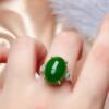新款气质鹅蛋形仿真和田碧玉绿玉髓戒指女复古时尚轻奢高级感指环