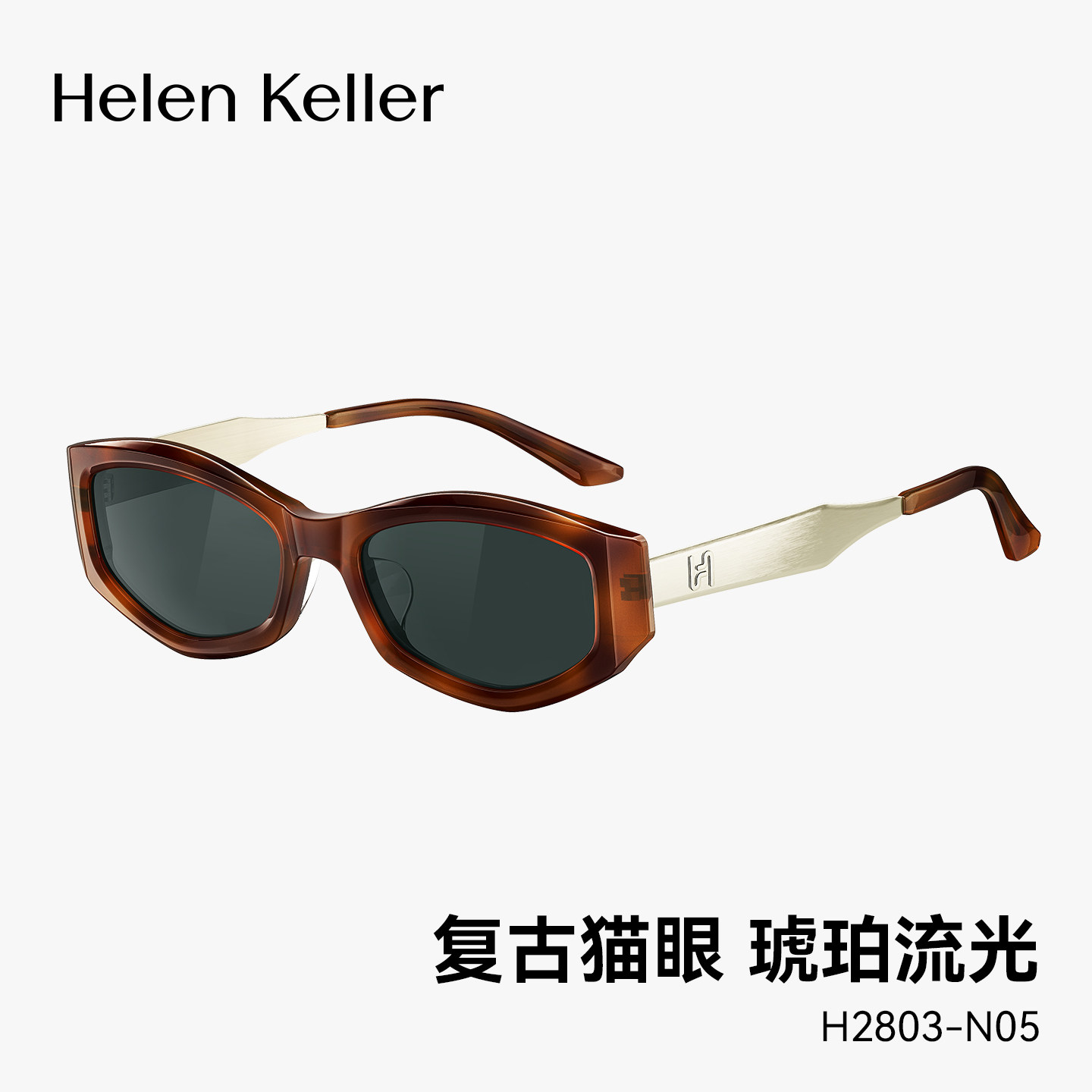 【火火镜】海伦凯勒刘诗诗同款复古玳瑁框板材猫眼墨镜女H2803