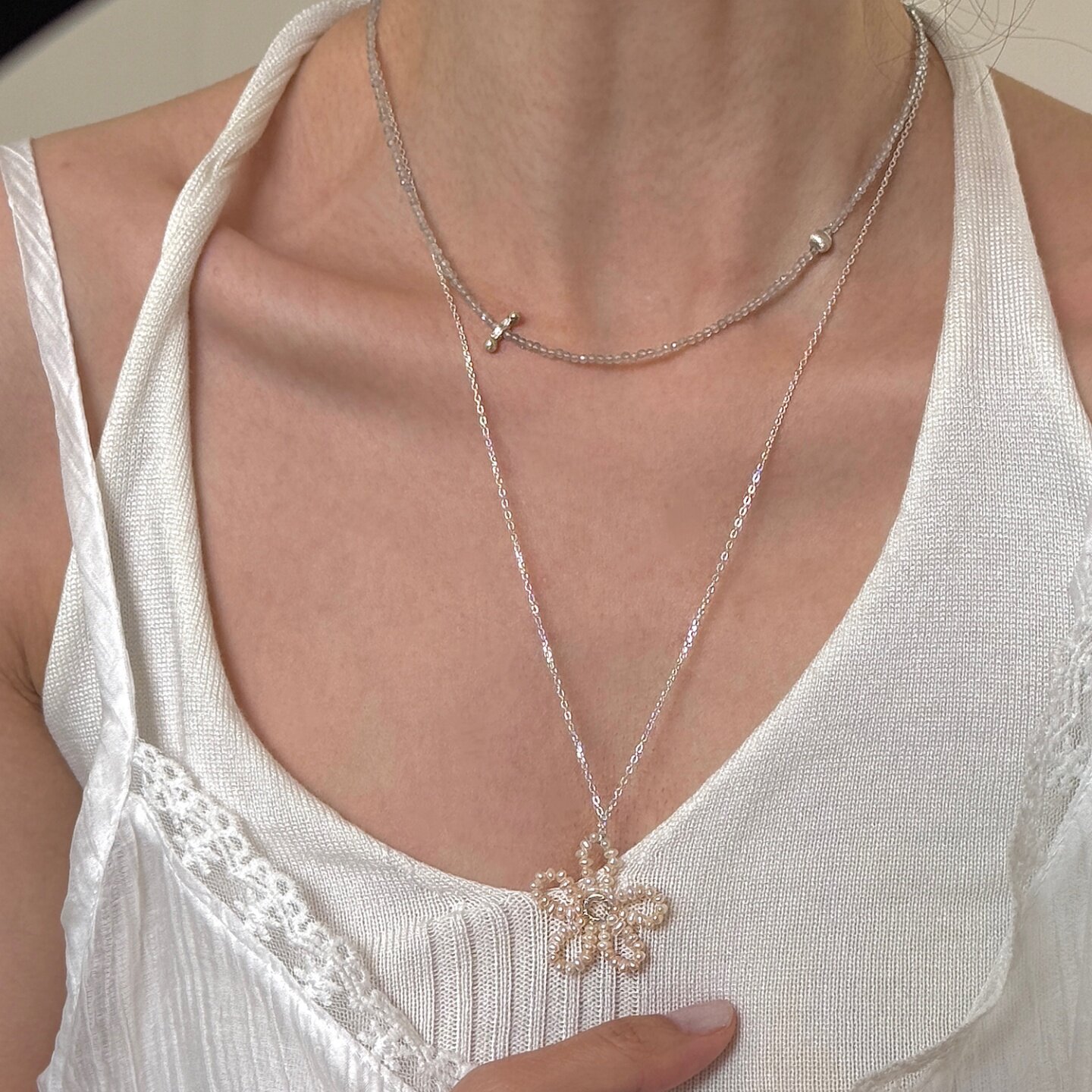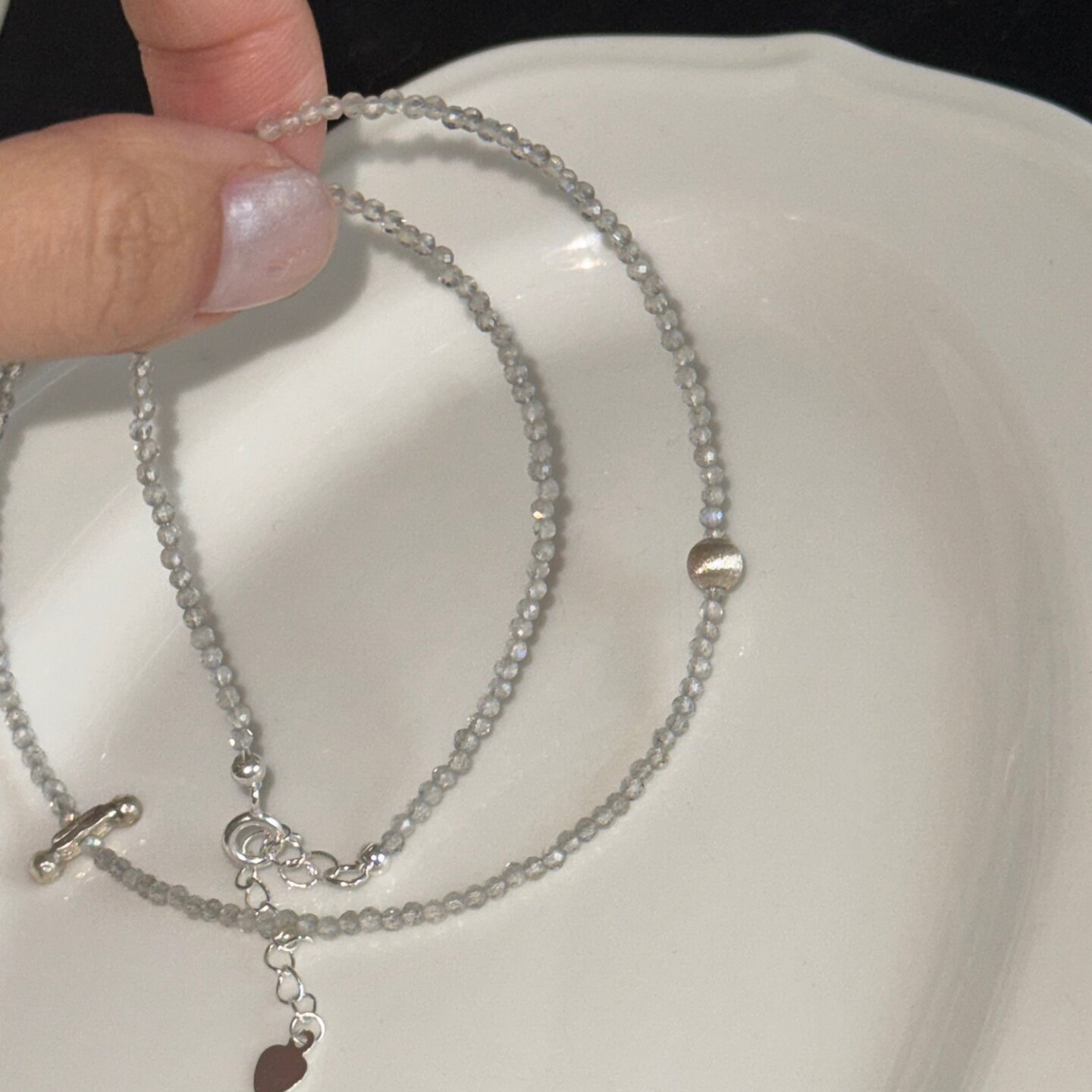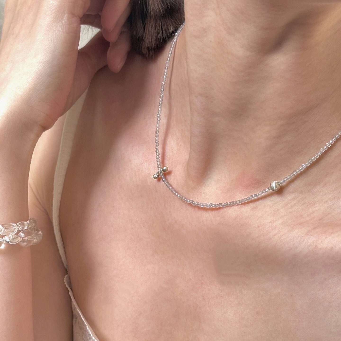 夏季月夜海边度假风灰色天然石拉丝小竖条锁骨链手工串珠简约项链