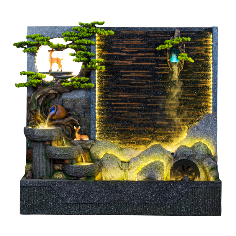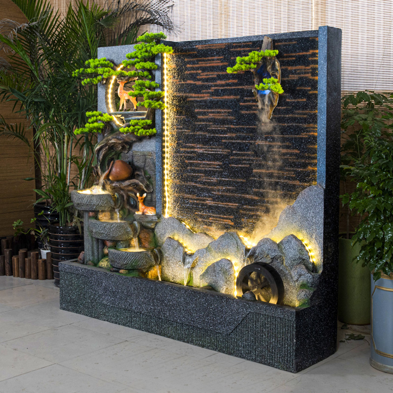 假山流水喷泉水幕墙庭院别墅水景造景风水轮客厅屏风隔断落地摆件