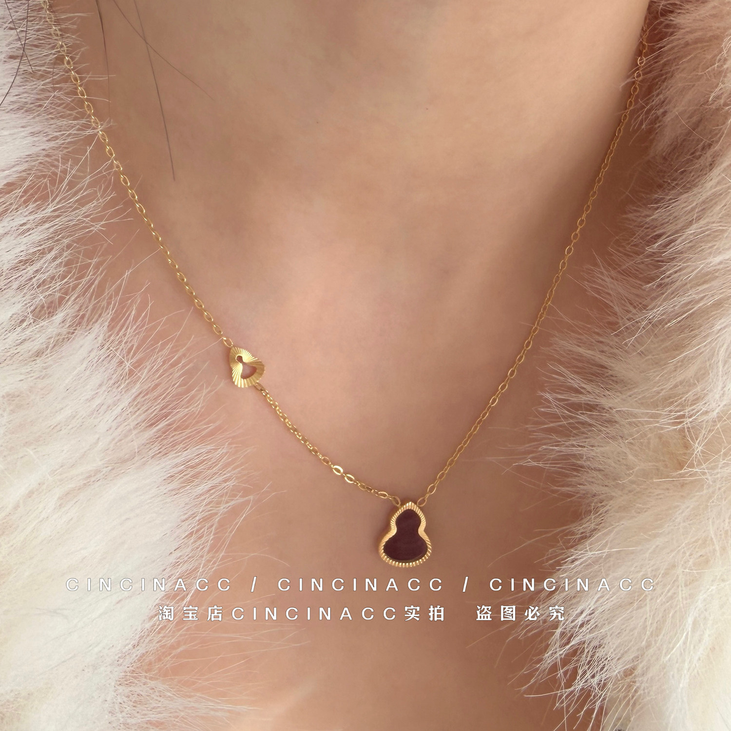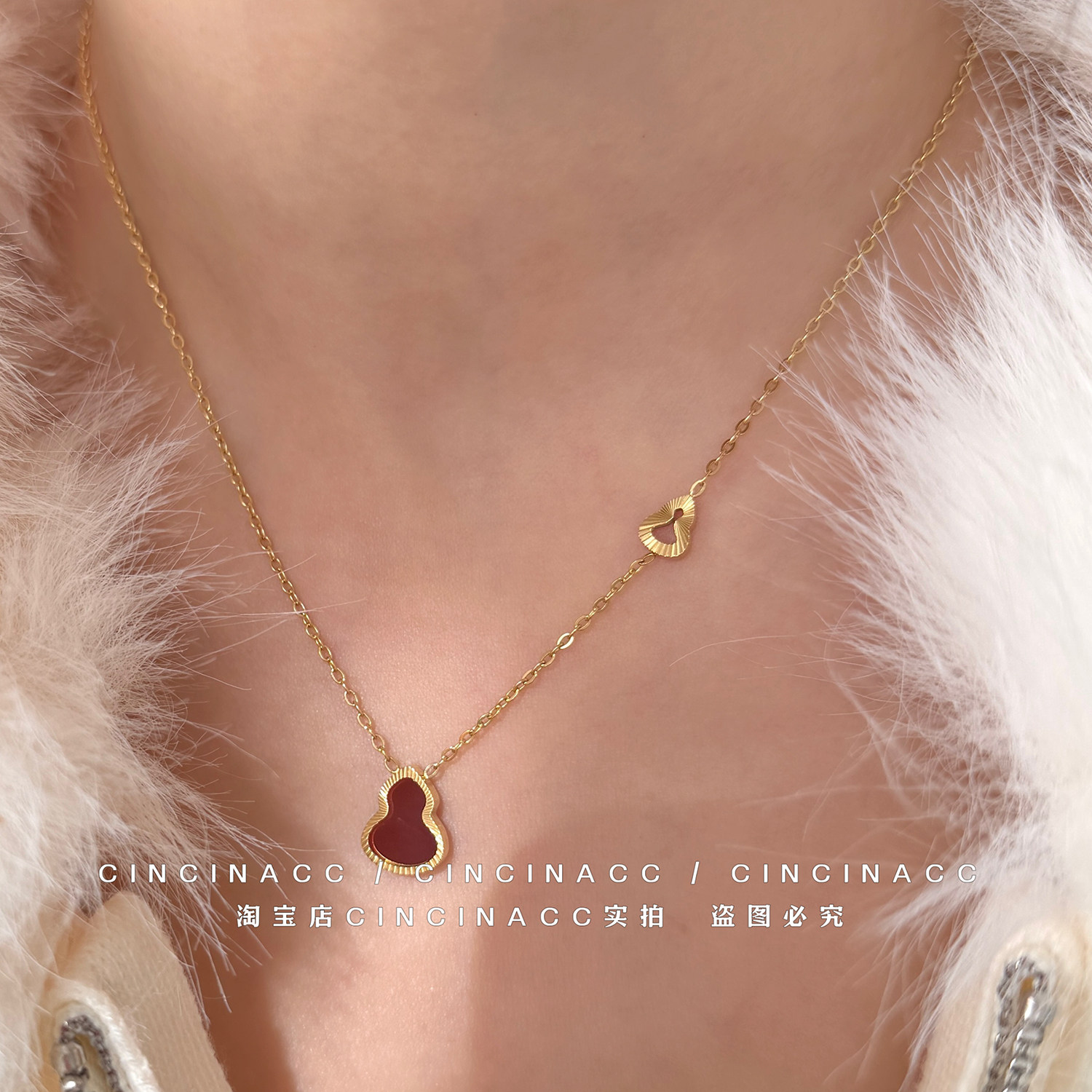 「招财葫芦」不掉色红色百搭钛钢葫芦项链气质新款吊坠锁骨链颈链
