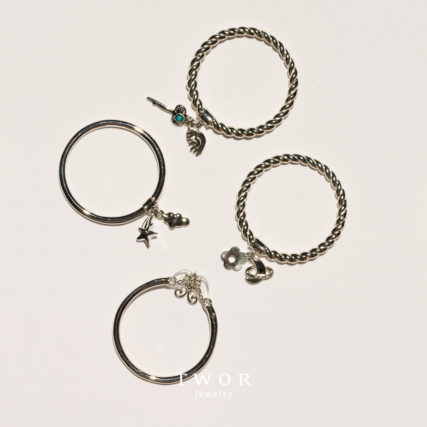 TWOR缇坞/甜梦碎片s925银白水晶翅蝴蝶叠戴高级戒指复古独特指环