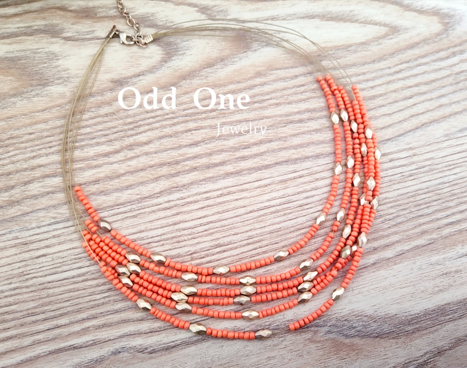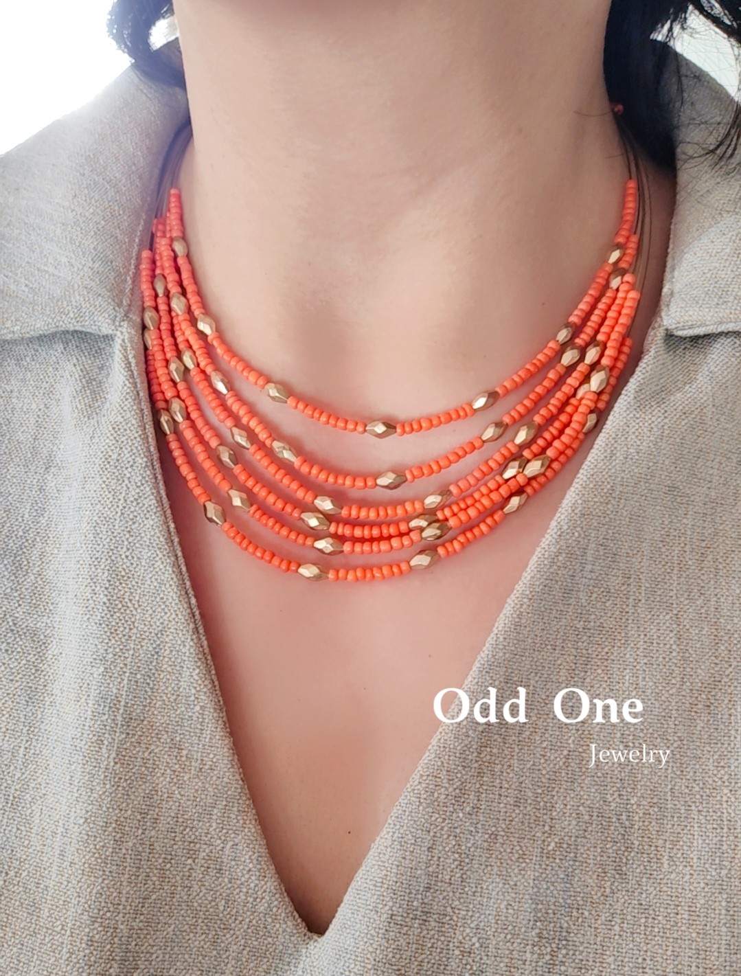 Odd One 阳光橙色米珠串珠多层民族风短项链