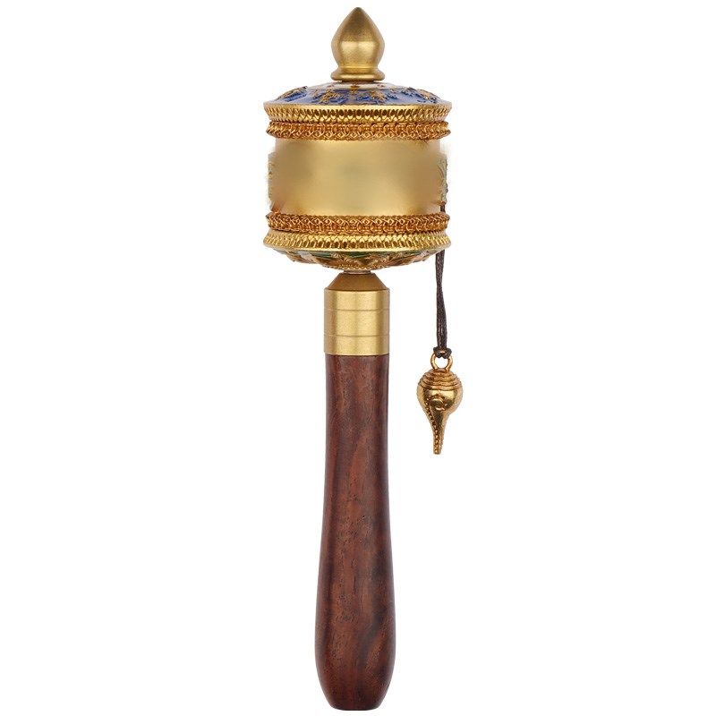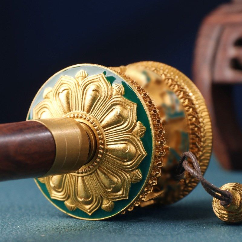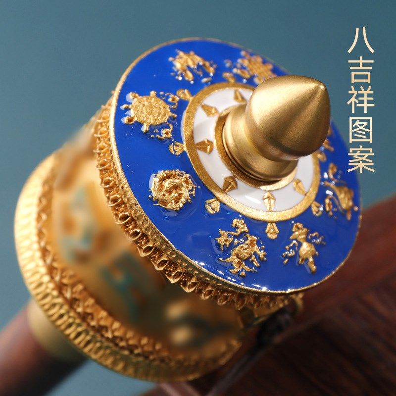 藏式八吉祥绿度母手摇转轮铜制彩绘立体浮雕双轴承桌面装饰品摆件