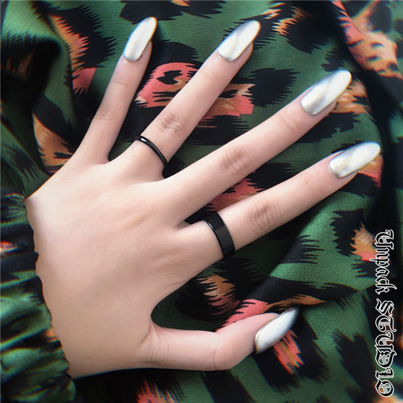 Unpack 暗黑系朋克黑色细指环日韩学生个性简约港风男女款细戒指
