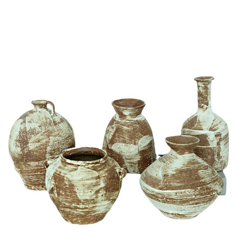 Atpeun复古花瓶粗陶侘寂风民宿陶罐新中式陶瓷插干花花盆家居摆件