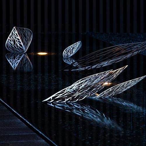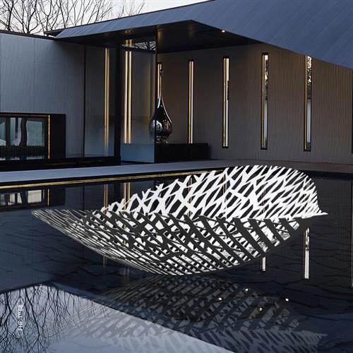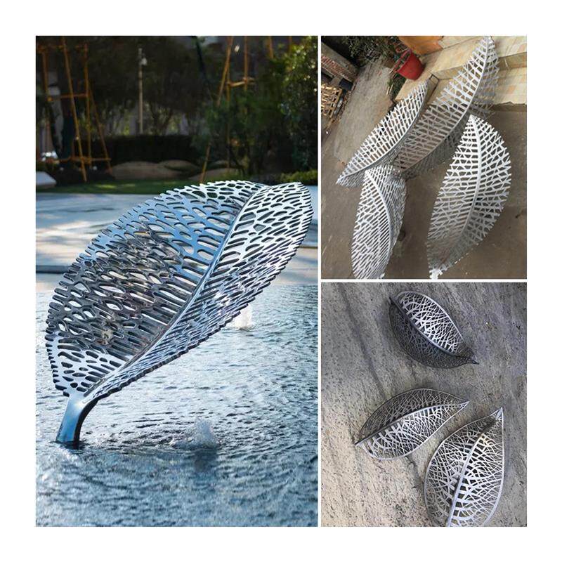 户外不锈钢镂空树叶雕塑立体镜面叶子摆件枫叶酒店水景售楼部装饰
