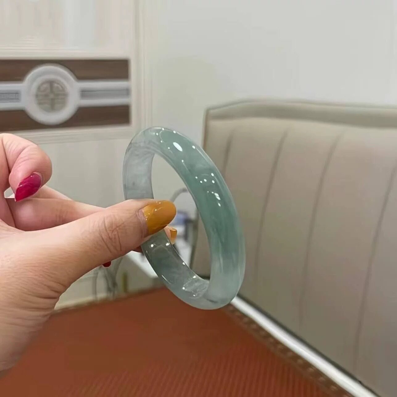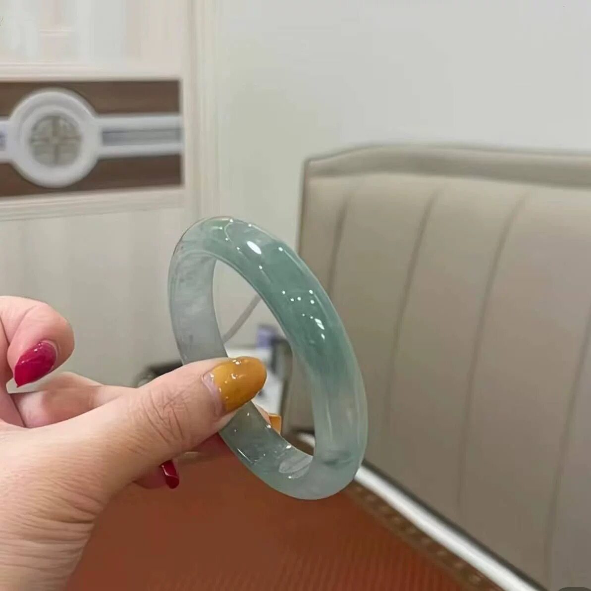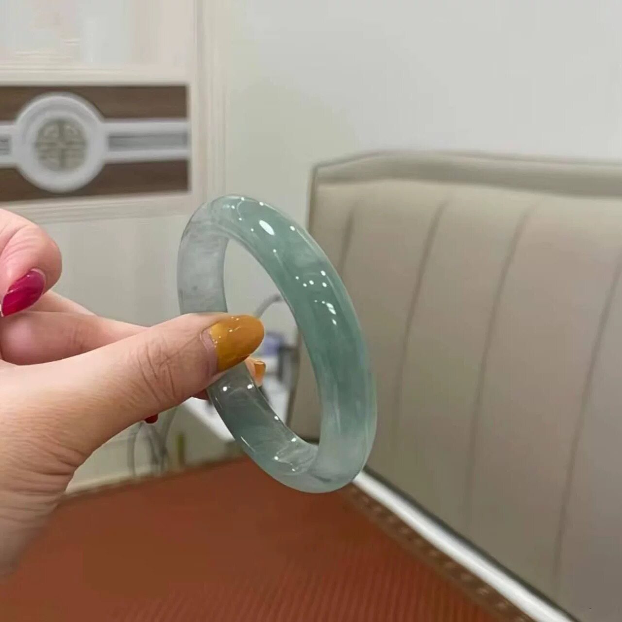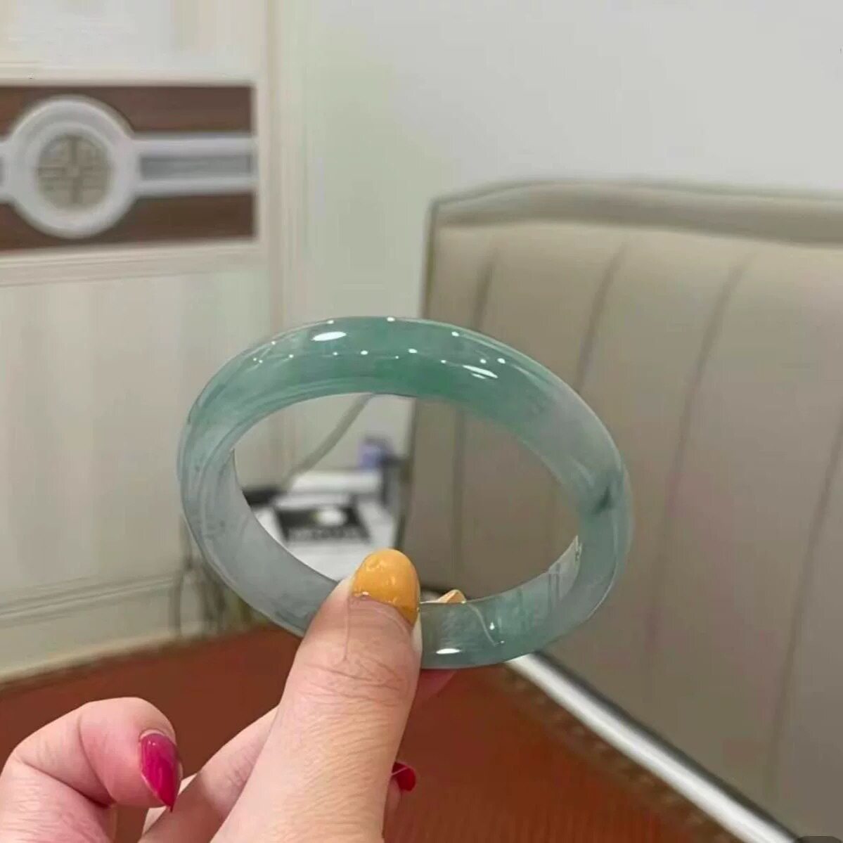 冰种翡翠手镯女款缅甸老坑冰种飘花玉手镯正圈玉石翠绿色翡翠镯子