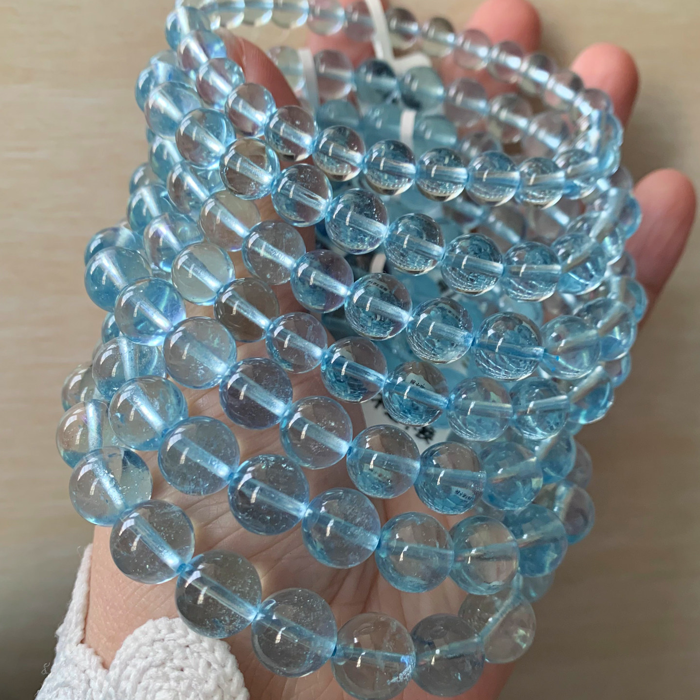 天然冰湛蓝海蓝宝手链巴西绿柱石水晶宝石碎碎冰手串饰品礼物男女